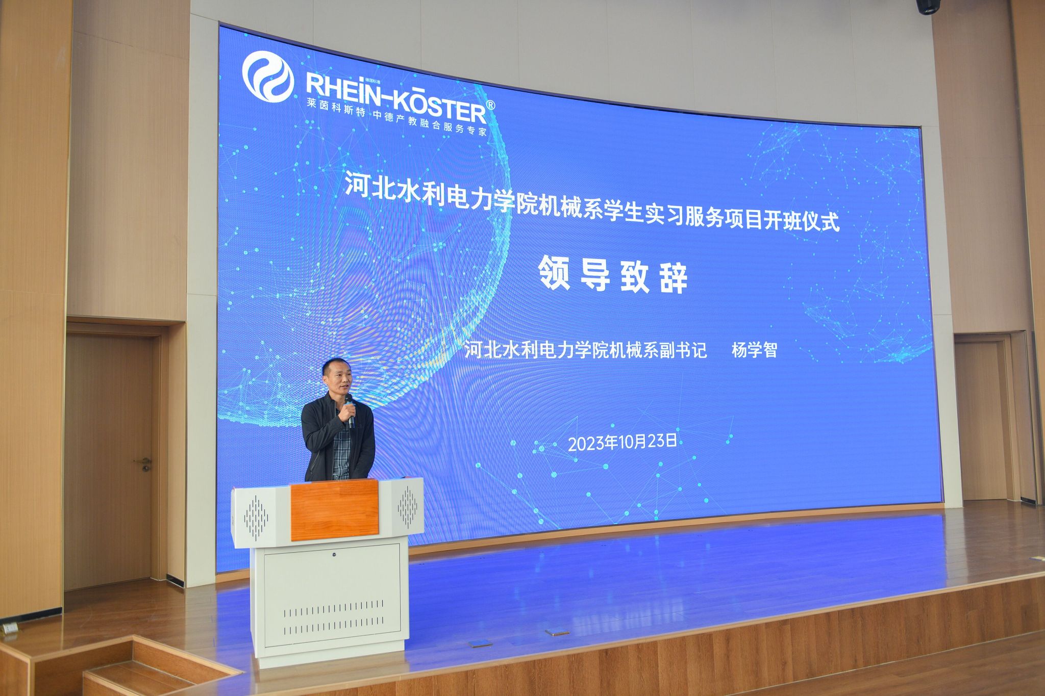 莱茵科斯特中德项目总监贝宁发表致辞,他表示,莱茵科斯特不仅专注于教授学生职业中所需的基本技术技能,同时致力于帮助大家成为具有创新思维的人才。他希望通过此次培训,同学们能够拓宽视野,提高自身的实践能力,真正做到学有所获、学以致用,为将来面对现代技术行业的挑战和机遇做好准备。