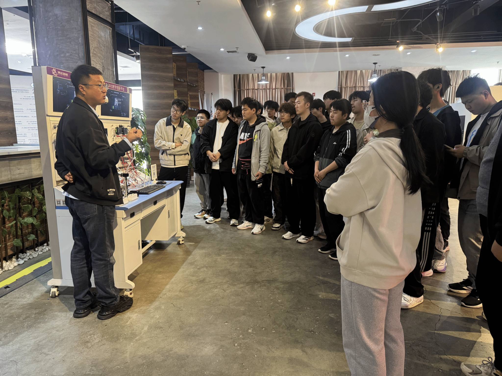 实习起始于校内的,认识实习的第一站是校内数控实验室、液压实验室和机器人实验室等。在数控实验室,教师详细讲解了数控机床的结构、工作原理与操作流程,使同学们明白了编程技术在现代机械加工中的核心地位。踏入液压实验室,各类液压元件和实验装置吸引了学生们的目光,教师通过演示液压系统的工作过程,深入浅出地阐释了液压传动的原理和优势。机器人实验室则是一片充满科技感的天地,学生们近距离接触到多种类型的机器人,学生们积极参与互动,尝试编写简单的机器人控制程序,感受机器人技术中机械、电子、控制等多学科融合的力量,对机械电子工程专业的前沿发展方向有了更清晰的认知。