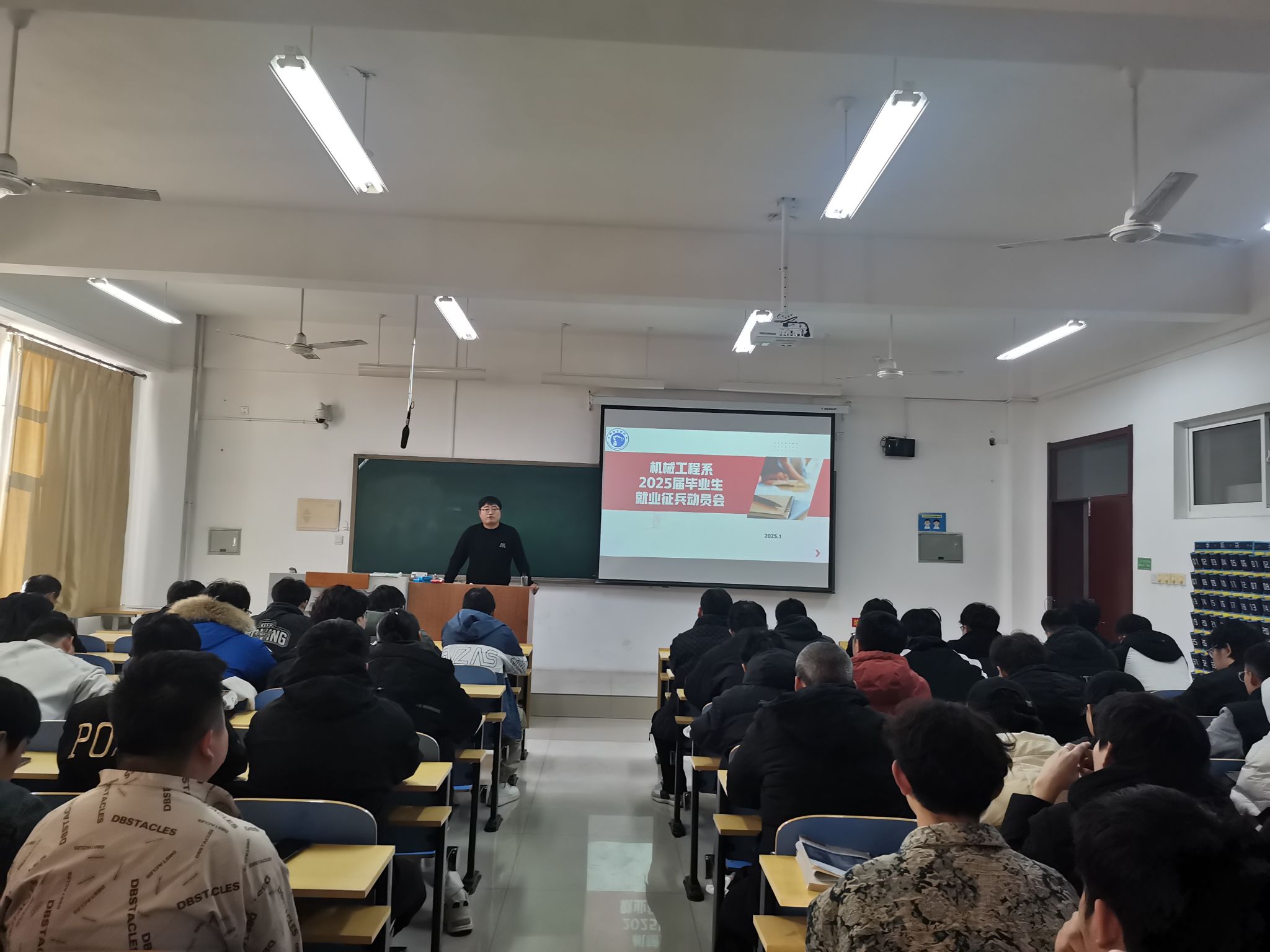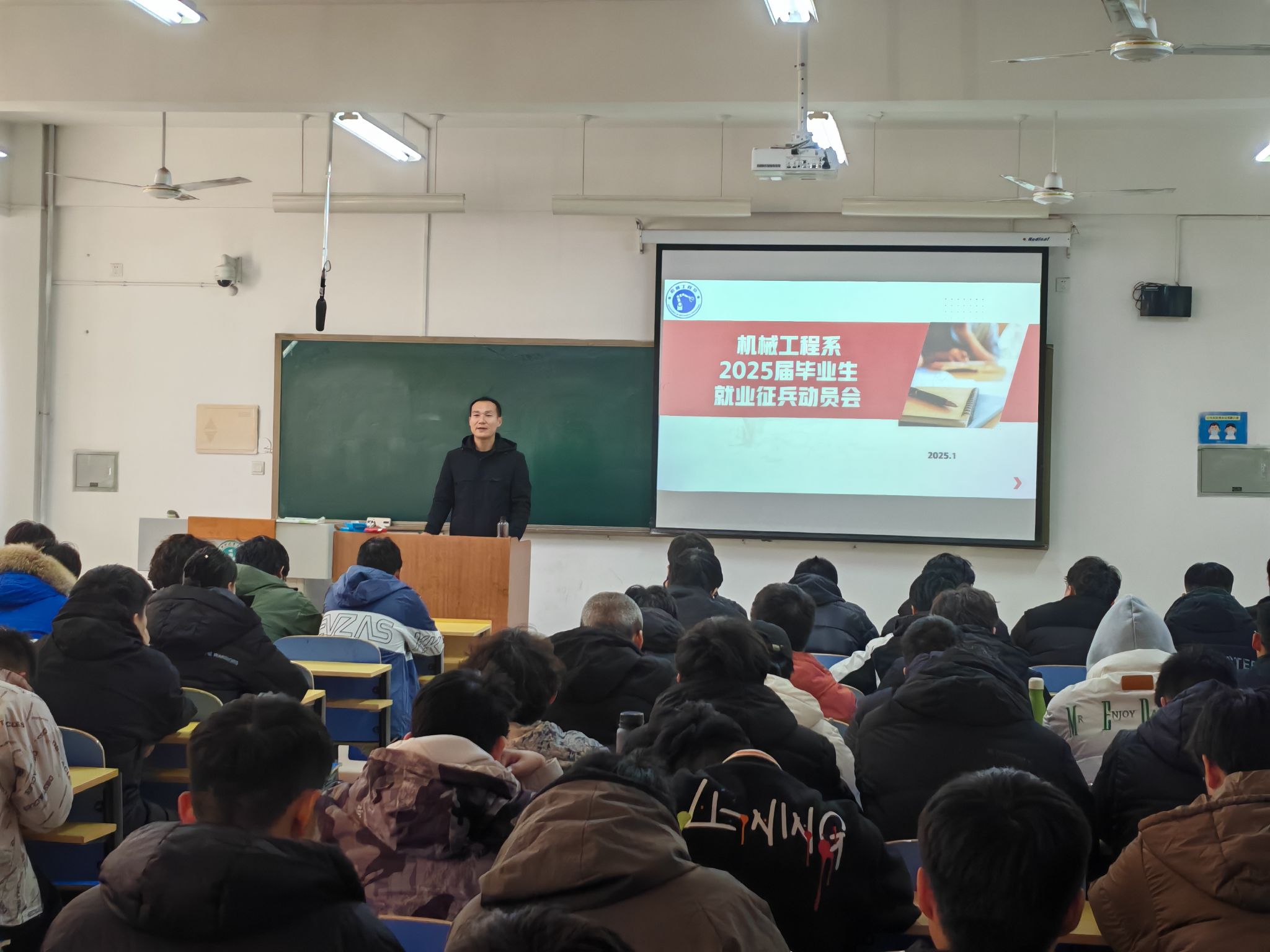 随后,系党委副书记杨学智向同学们分析了当前的就业形势和往届毕业生就业情况,详细解读了大学毕业生参军入伍的相关政策,包括政治条件、年龄条件、身体条件和文化条件等方面的要求。杨学智老师指出,大学毕业生参军入伍不仅能够为部队输送高质量的优秀人才,更是实现强国梦、强军梦与维护国家总体安全的重要举措。他通过典型案例分析了毕业生入伍在部队发展的美好前景,并详细介绍了报名流程、经济补助、政治优待、部队发展、退伍升学、就业安置等优惠政策。在动员讲话中,杨学智老师结合机械专业特点,强调了机械类毕业生在入伍后的专业对口优势和发展潜力,他鼓励同学们将个人理想与强军建设相结合,为自己的人生增添一抹亮丽的色彩。