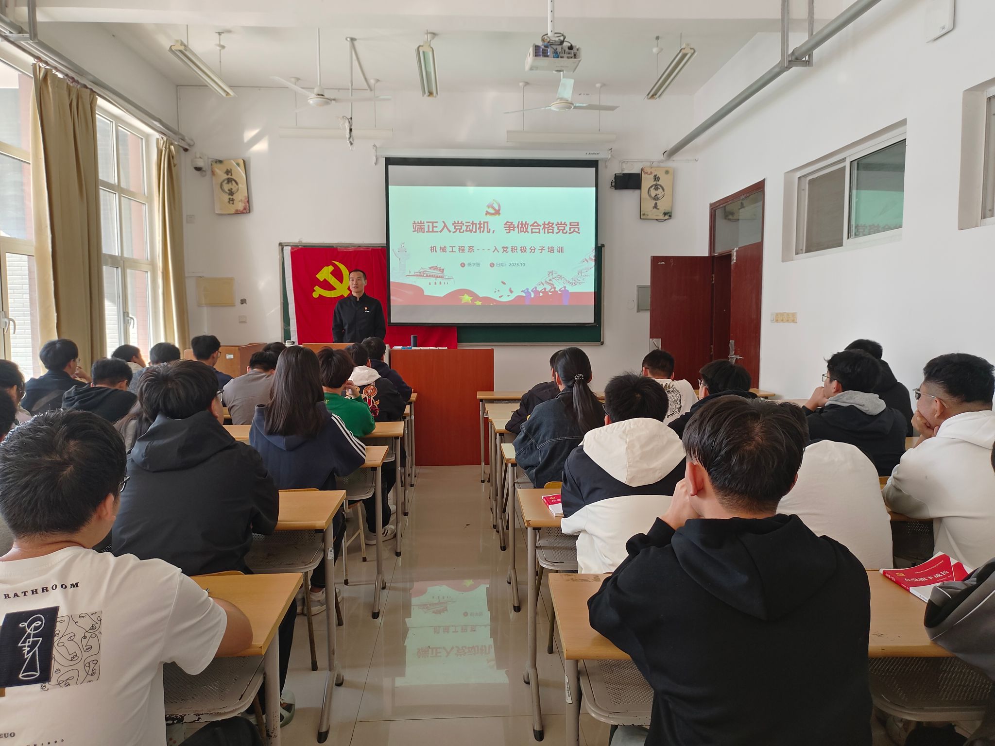 2023年10月22日上午,我系在3B教学楼107室开展了以“端正入党动机,争做合格党员”为主题的入党积极分子培训,英国365上市集团杨学智老师担任主讲人。我系共有27位同学参加本次培训。