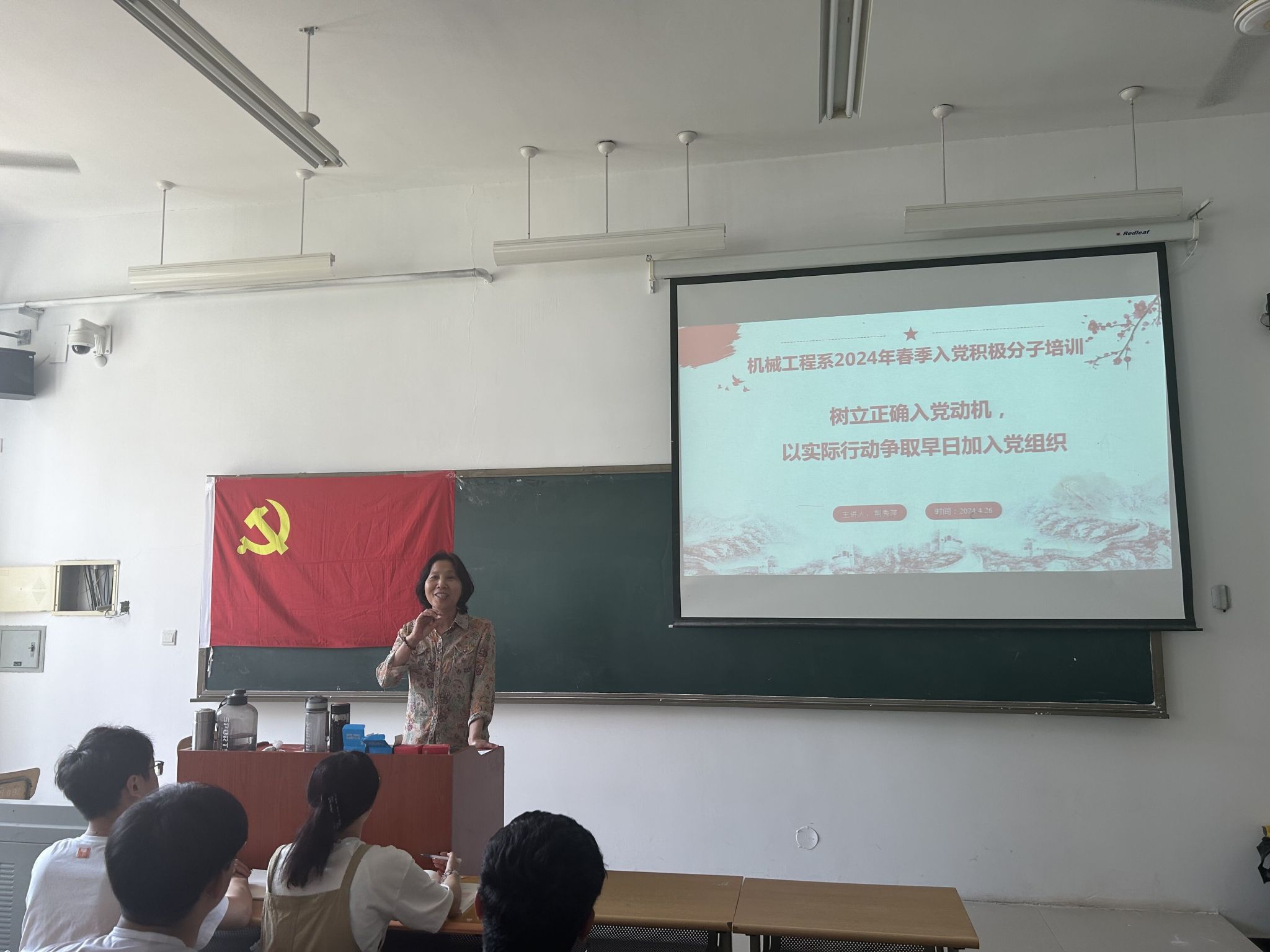 为深入学习贯彻习近平新时代中国特色社会主义思想和党的二十大精神,切实做好入党积极分子的培养和教育工作,提高入党积极分子的党性修养和政治觉悟,引导入党积极分子端正入党动机、坚定理想信念,英国365上市集团于2024年4月26日在3B103教室开展2024年春季学期入党积极分子培训第一讲。此次培训由系党总支书记荆秀萍主讲。