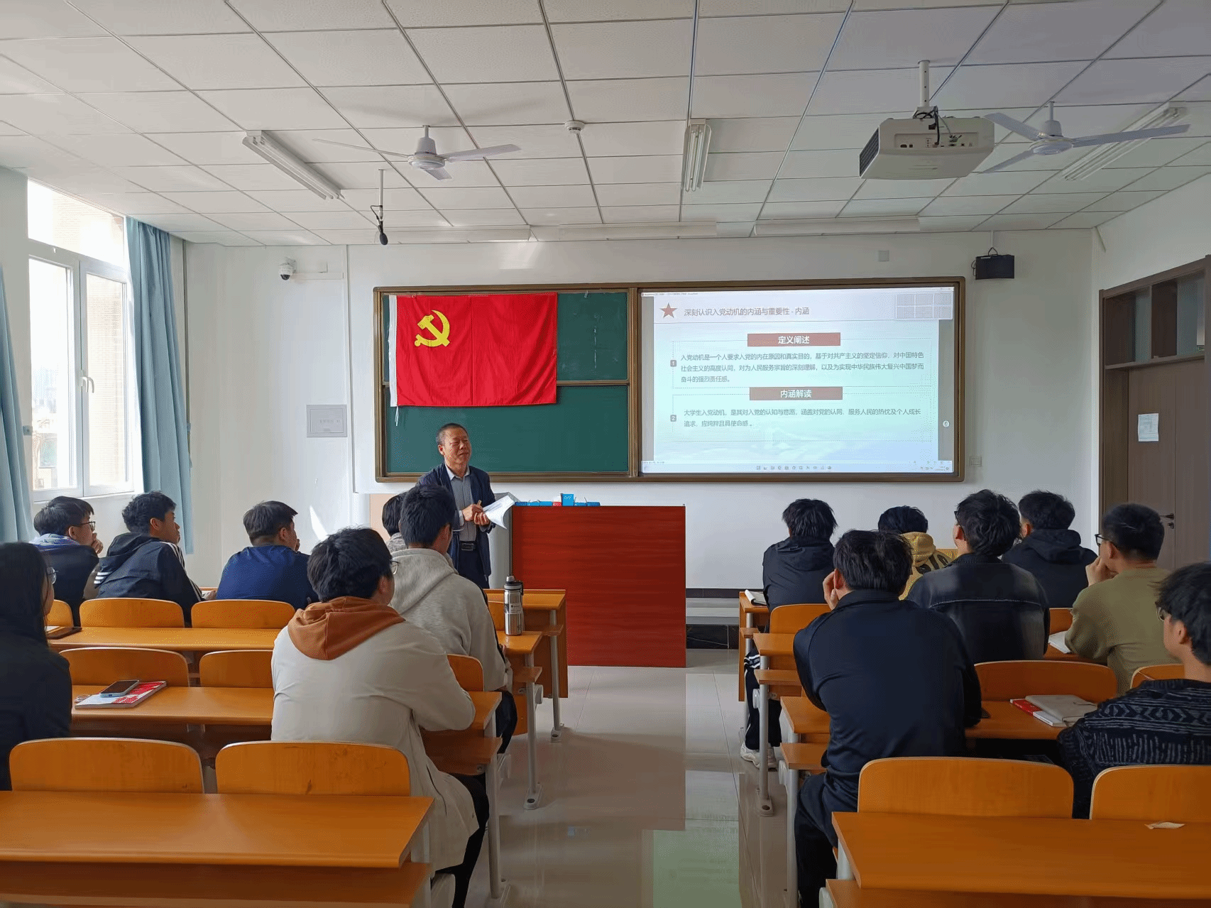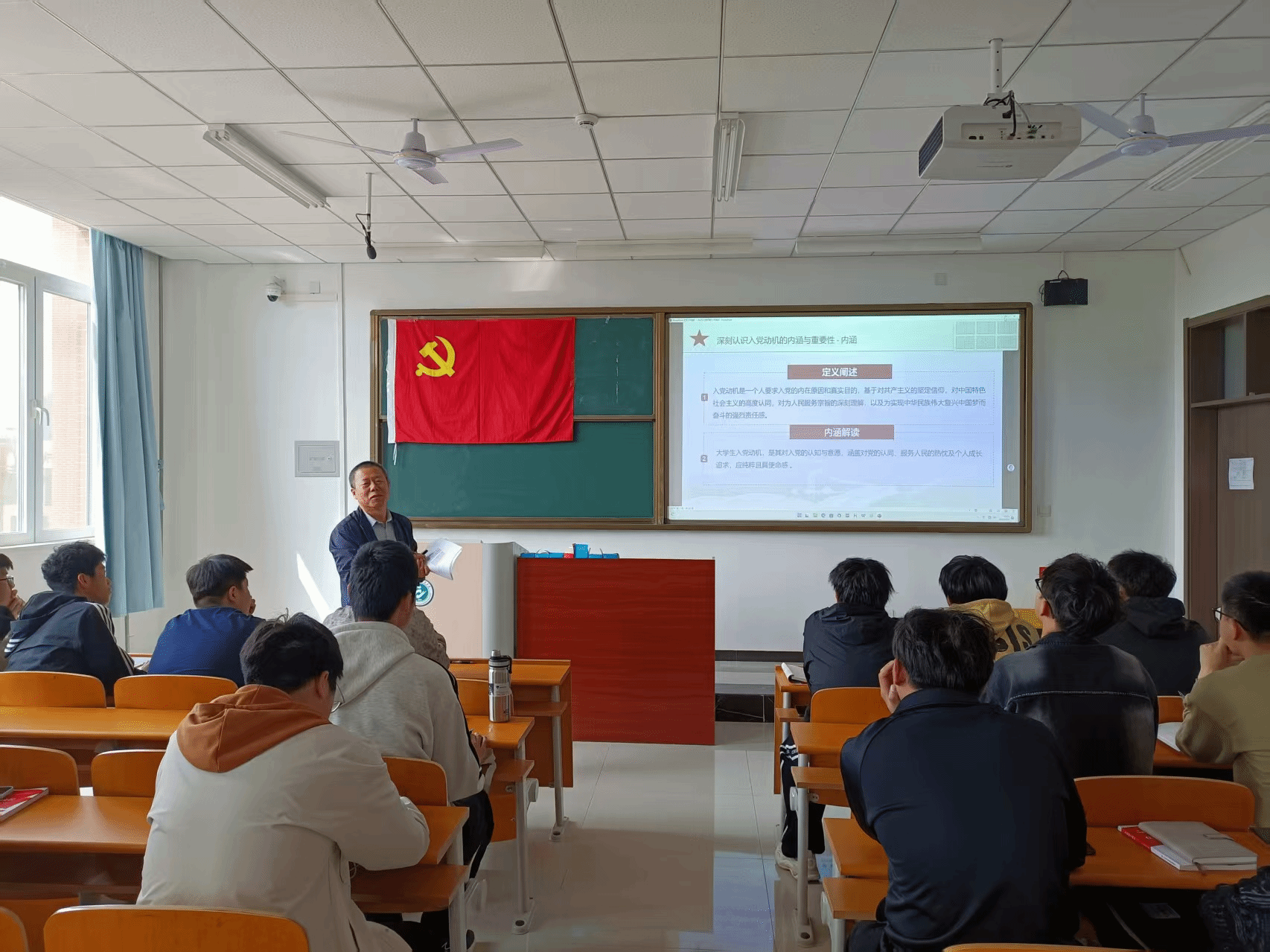 张铁壁根据收集的问卷调查结果系统分析了当前大学生入党动机存在的问题,并阐述了端正入党动机的路径与方法。他强调,正确的入党动机不仅要在思想上认同党的理论,更要在行动上践行党的宗旨。要加强理论学习,不断坚定对马克思主义的信仰和对中国特色社会主义的信念;要积极参与社会实践,不断深化对党的认识,明确新时代大学生的责任与担当;要自觉接受党组织的培养和教育,在反思与改进中实现自我成长;要勤奋刻苦学技能,勇于担当做先锋,从点滴做起,从身边的小事做起,以实际行动争取早日成为一名合格的共产党员。