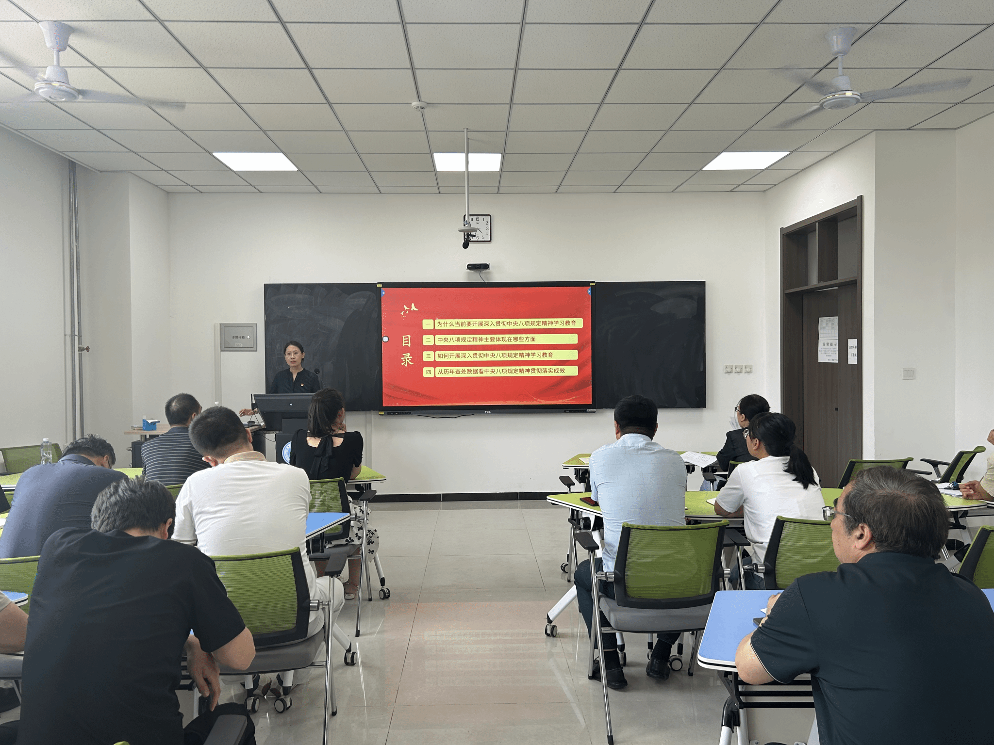 路维从“为什么当前要开展深入贯彻中央八项规定精神学习教育”“中央八项规定精神主要体现在哪些方面”“如何开展深入贯彻中央八项规定精神学习教育”“从历年查处数据看中央八项规定精神贯彻落实成效”四个方面进行讲授。