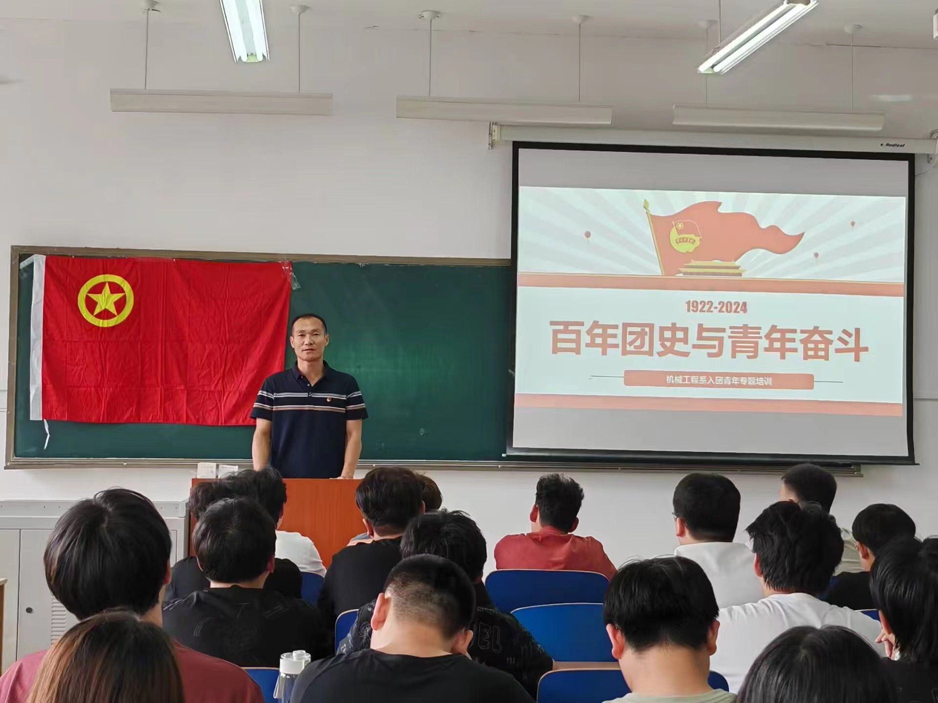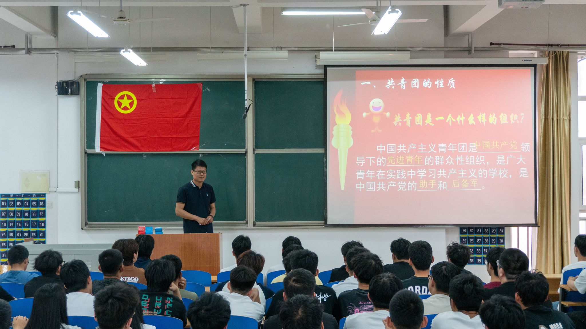 系团委书记贺欢呼主要讲解了共青团的性质、入团条件、入团流程,以及团旗、团徽和团歌的内涵,勉励入团积极分子要树立正确的入团动机,坚定正确的思想意识,以团员标准规范约束自己,发挥团员的模范和示范作用,希望大家勤奋学习、积极进取,焕发青春激情,向着更高的目标前进,为团组织争光添彩。