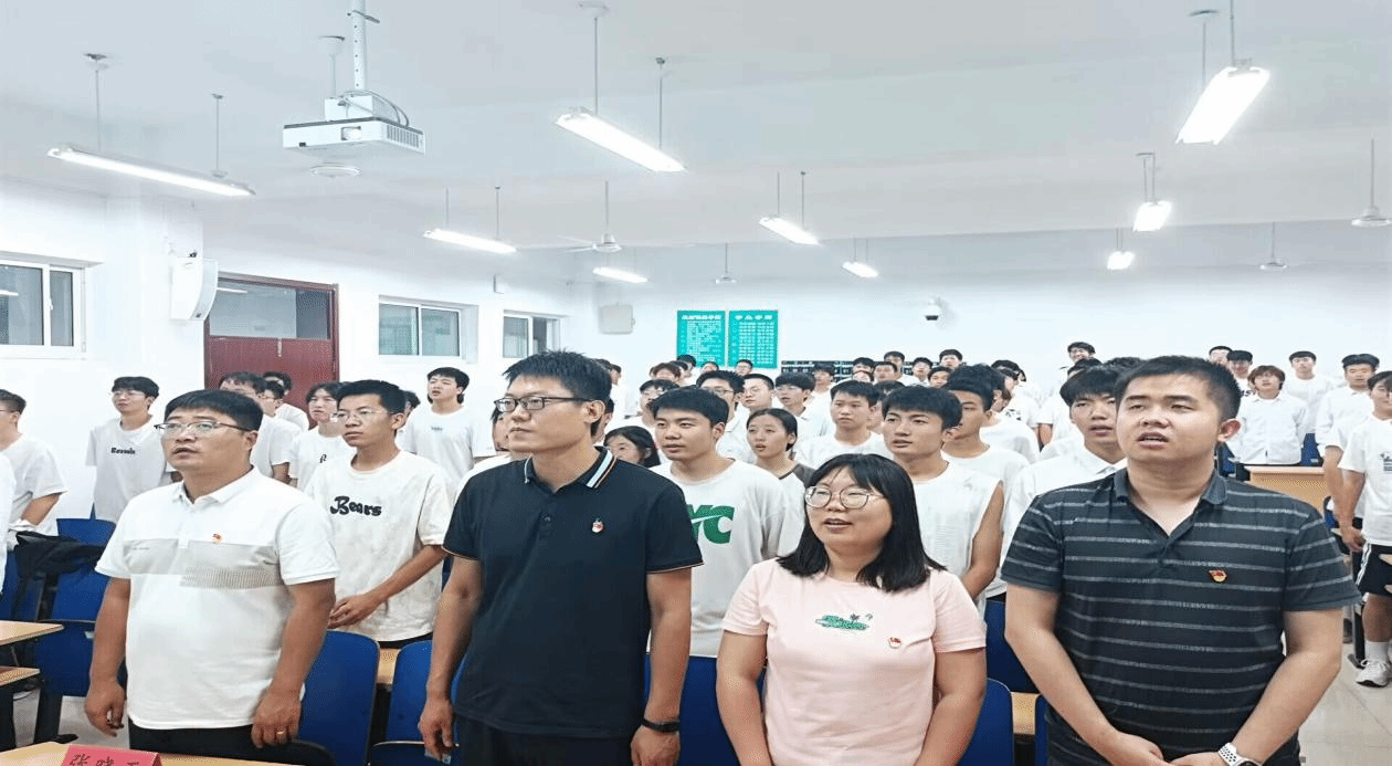 仪式第一项全体师生起立,奏唱中华人民共和国国歌。