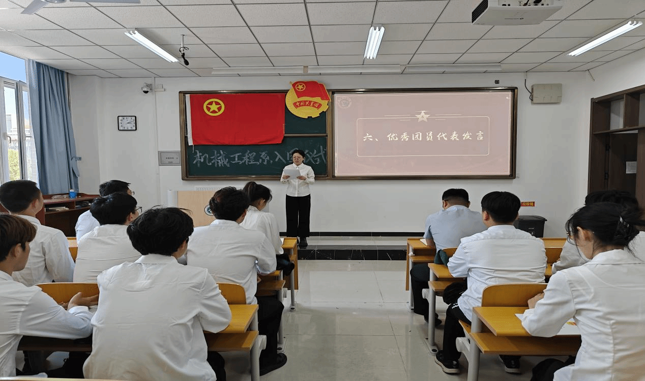 贺欢呼首先为同学们讲述了团组织的发展历程,唤起了大家强烈的责任感与使命感。他指出,青年是国家的未来和希望,新团员们应当传承团组织的优良传统与先辈们的红色精神。他鼓励新发展团员珍视入团机遇,认真学习团的知识,积极投身团的活动,在实践中不断提升综合素质与能力水平,为团组织的建设贡献力量。最后,贺欢呼殷切叮嘱同学们,要始终牢记党的嘱托,坚守初心、担当使命,为实现中华民族伟大复兴的中国梦不懈奋斗。