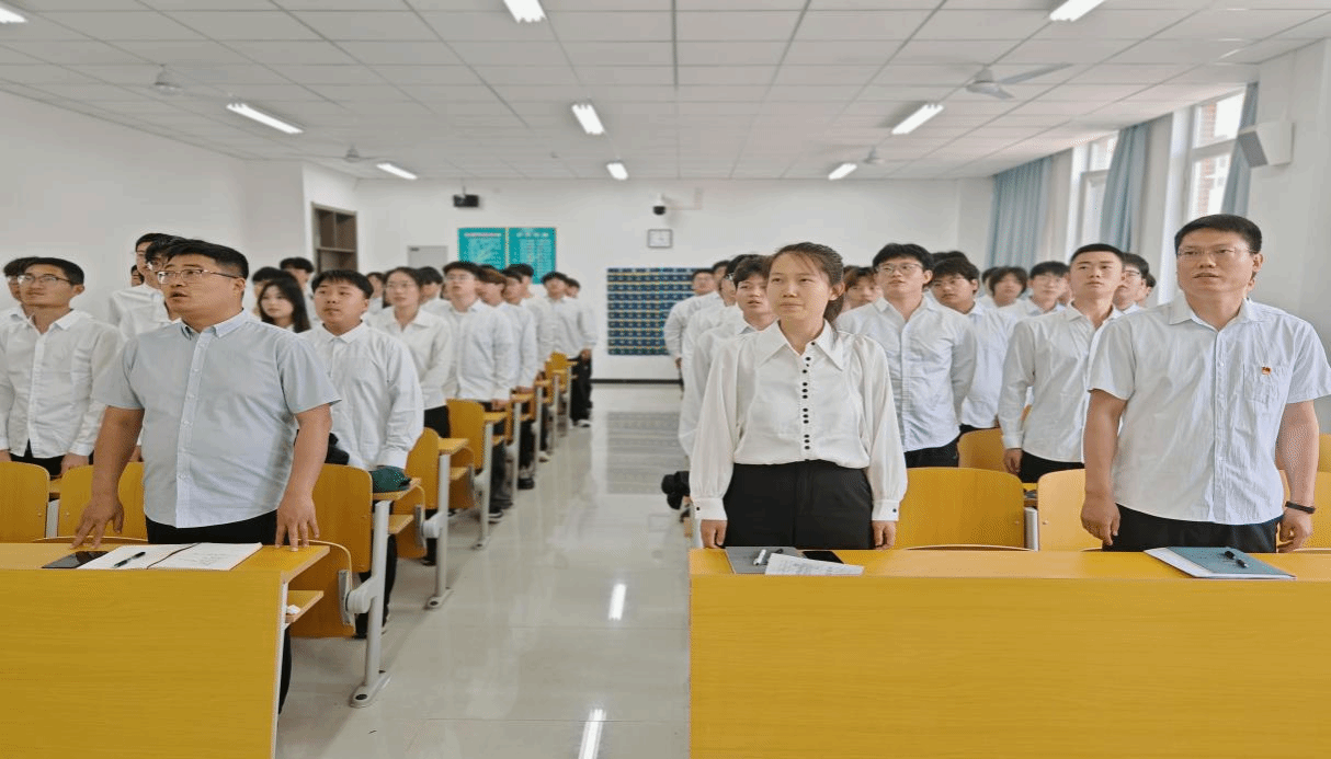 新发展的团员们右手握拳高举过肩,身姿挺拔目视前方,在郭帅鹏同学的领誓下,他们以洪亮激昂的声音庄严宣誓。一句句誓词掷地有声,在教室的每个角落回荡,也深深镌刻在每一位新团员的心底,充分彰显了他们为党和共青团贡献力量的坚定决心。
