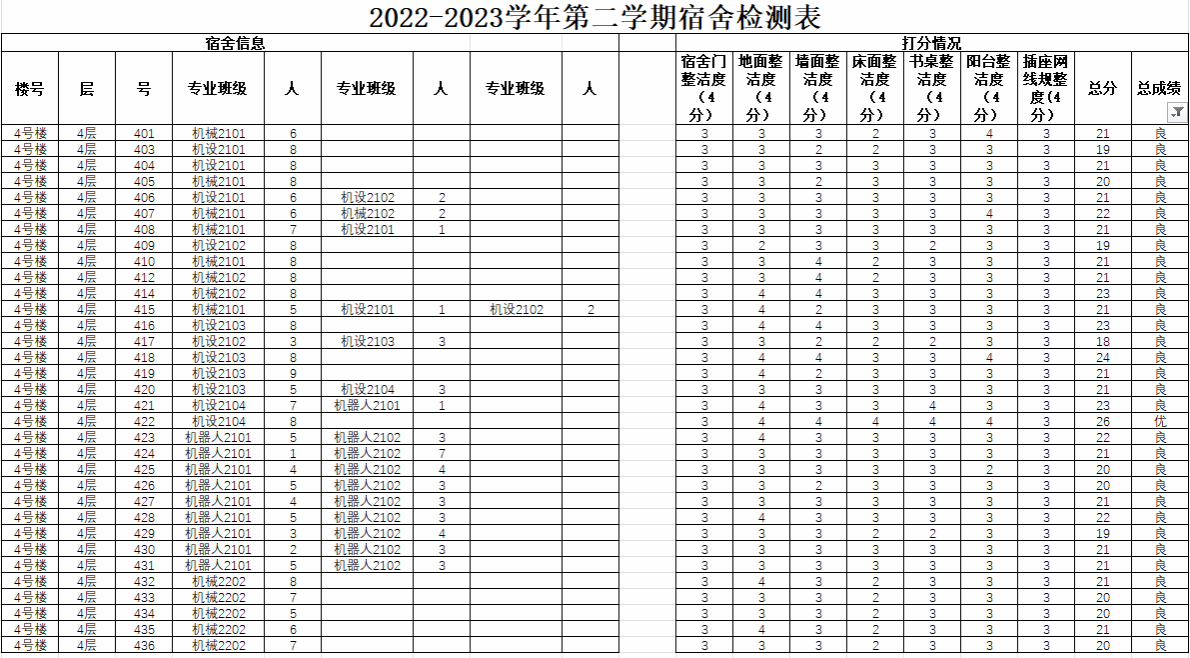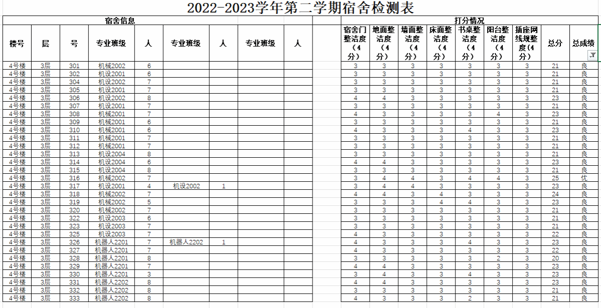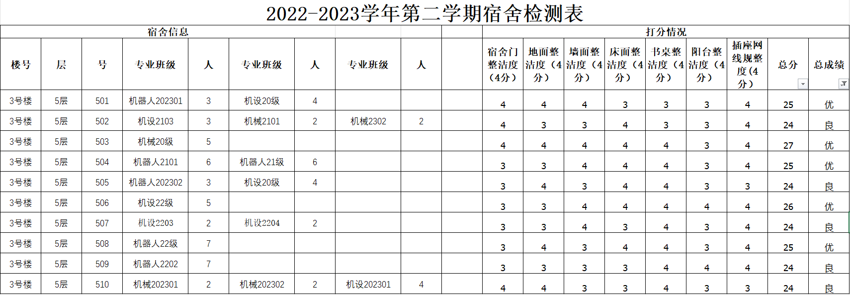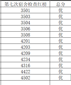 为了进一步加强宿舍卫生管理,我系自律部于10月16日开展了第七次宿舍卫生检查,现将各寝室卫生检查状况公示如下: