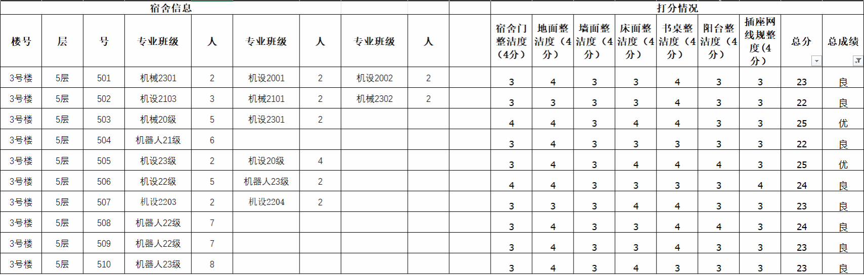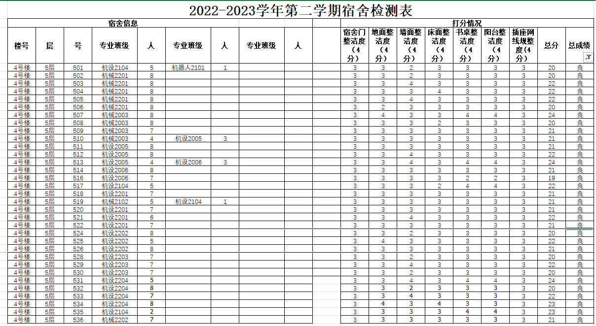 以下是宿舍达标榜(排名不分先后):