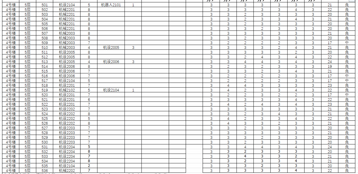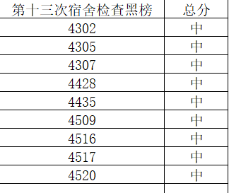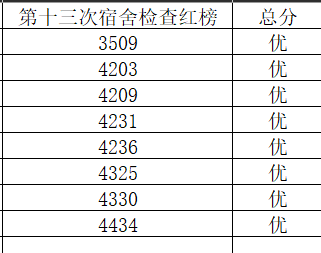为了进一步加强宿舍卫生管理,我系自律部于11月13日开展了第十三次宿舍卫生检查,现将各寝室卫生检查状况公示如下:
