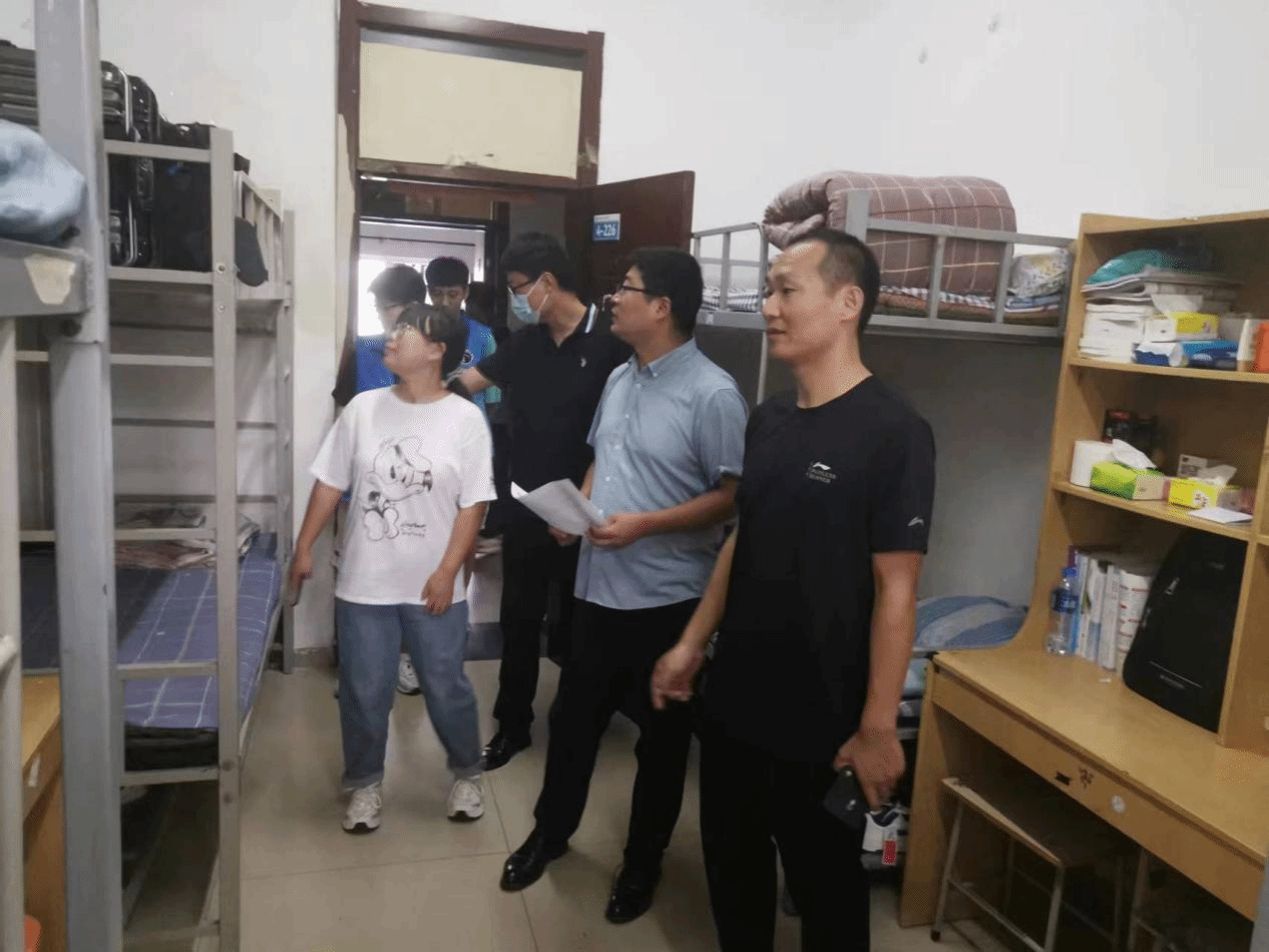为加强学校学生宿舍安全管理工作,排查学生宿舍安全隐患,强化学生安全防范意识,营造良好的宿舍氛围,2023年9月7日上午,英国365上市集团党总支书记荆秀萍老师、党总支副书记杨学智老师、团委书记贺欢呼老师、窦立军老师、张晓雨老师、安丽媛老师对英国365上市集团各个宿舍进行安全卫生大检查。