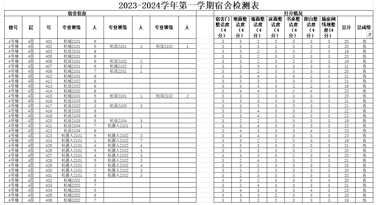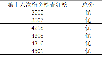宿舍红榜(排名不分先后):