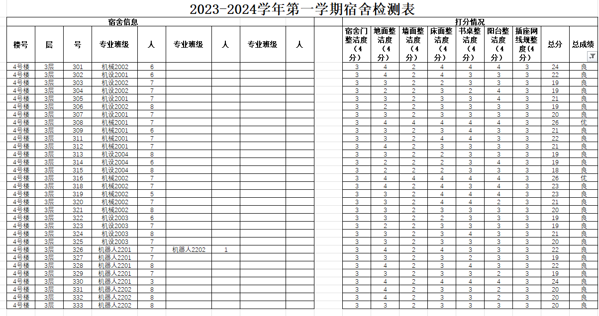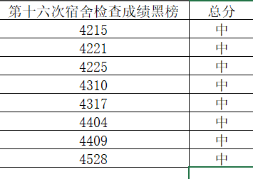 为了进一步加强宿舍卫生管理,我系自律部于11月27日开展了第十六次宿舍卫生检查,现将各寝室卫生检查状况公示如下: