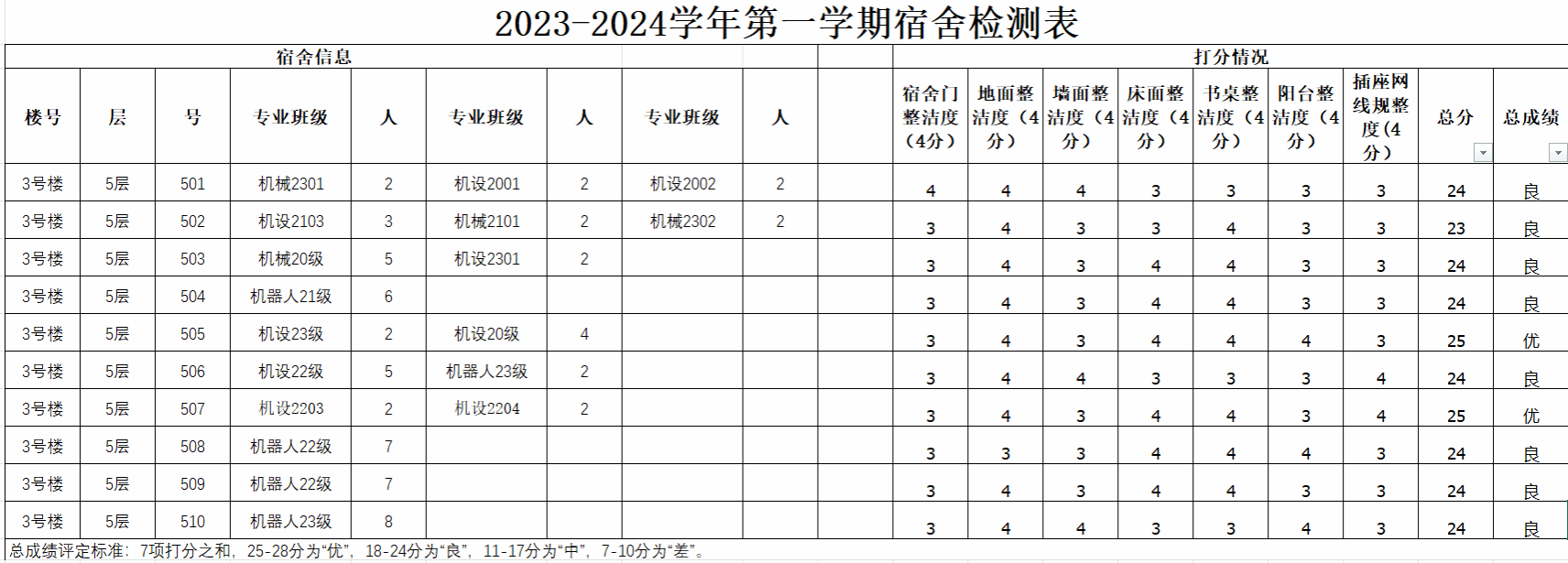 以下是宿舍达标榜(排名不分先后):