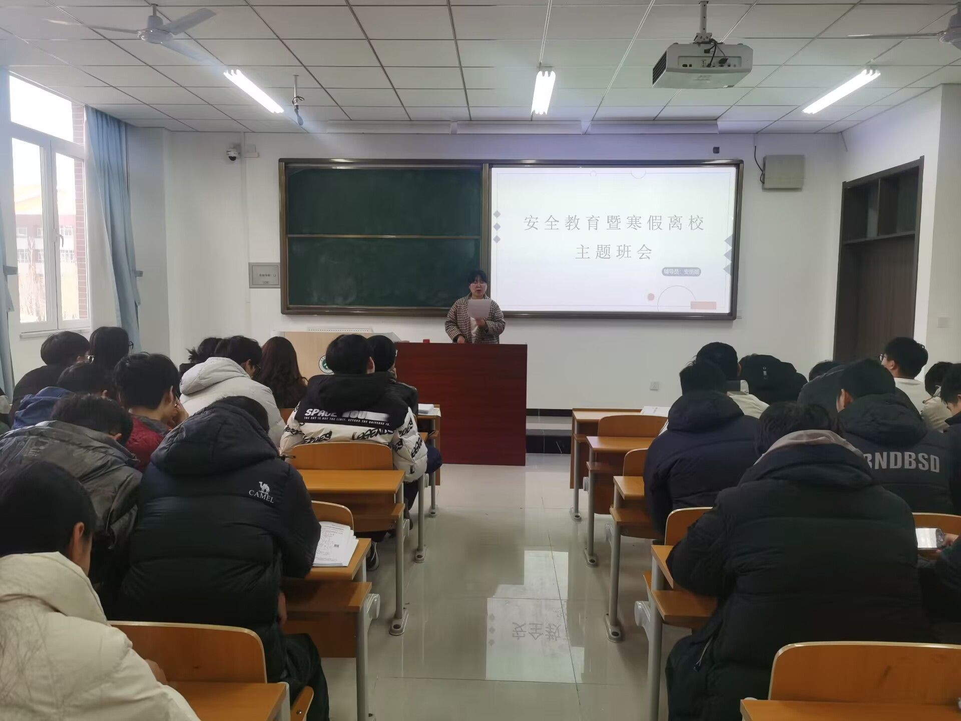 各位辅导员根据本班实际情况进行有针对性的教育,从校园安全、交通安全、假期安全三大方面入手,对学生进行了一次深刻的安全教育。重点针对假期宿舍安全,强调离校时关水、关电、关门窗,贵重物品带回家;返乡途中及假期外出注意交通安全,增强安全意识,加强自身防护防止意外事件发生;学习防电信诈骗、非法集资、传销、校园贷等方面的知识,避免学生利益受到侵害;谨防煤气中毒、烟花爆竹燃放危险、人员聚集踩踏、雨雪冰冻灾害等,引导学生充分认识到安全事故的严重危害,进一步增强自我保护意识和能力。