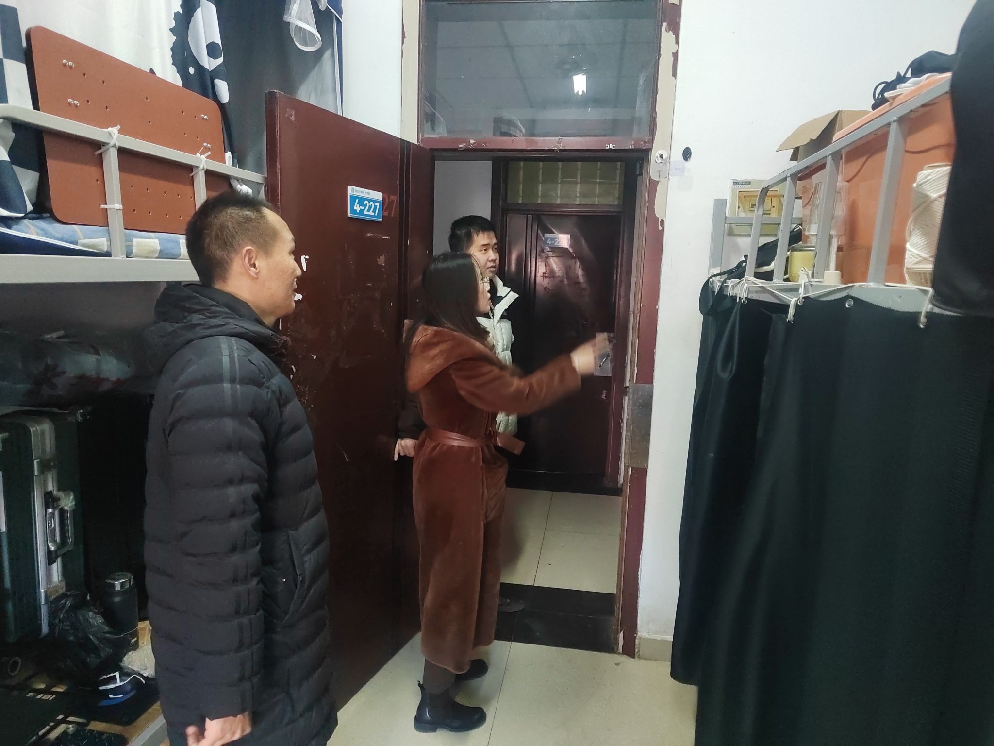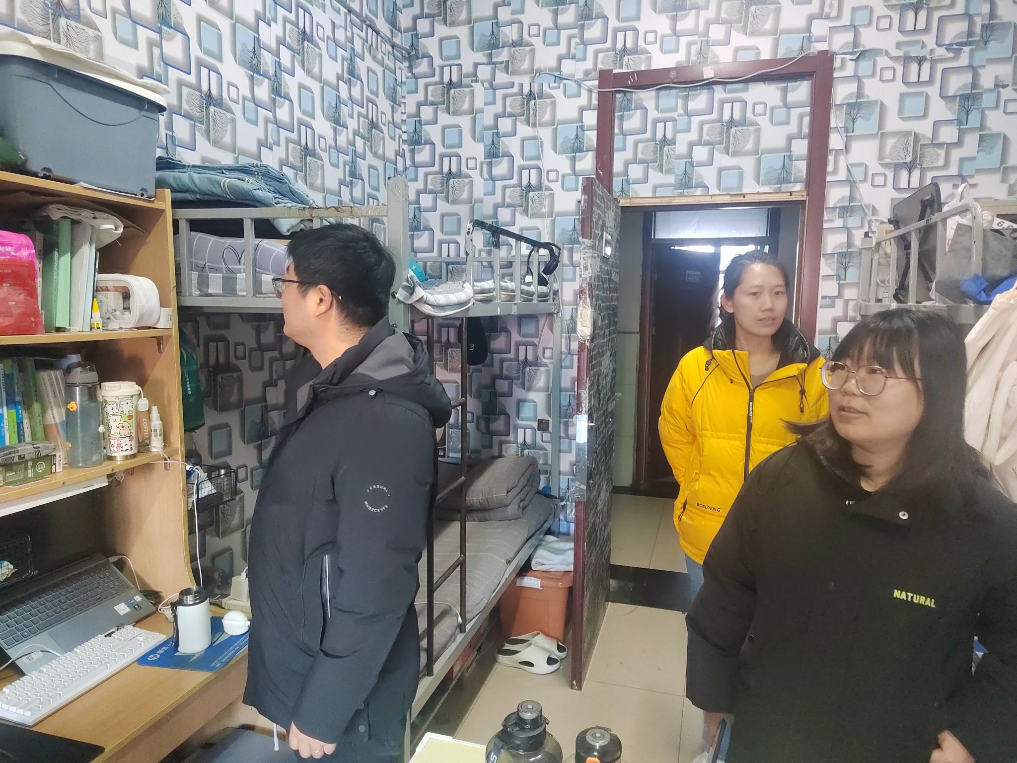 随后,老师们走进学生公寓。本次宿舍检查重点围绕学生返校状态调整,用电安全、消防安全以及卫生情况等方面。老师们逐一走访宿舍,与在宿舍的学生亲切交流,询问假期生活以及新学期准备情况,叮嘱学生们要做好学期规划,不荒废学业,同时叮嘱学生严格遵守学校宿舍管理规定,按时归寝,增强安全意识,注意防火防盗。