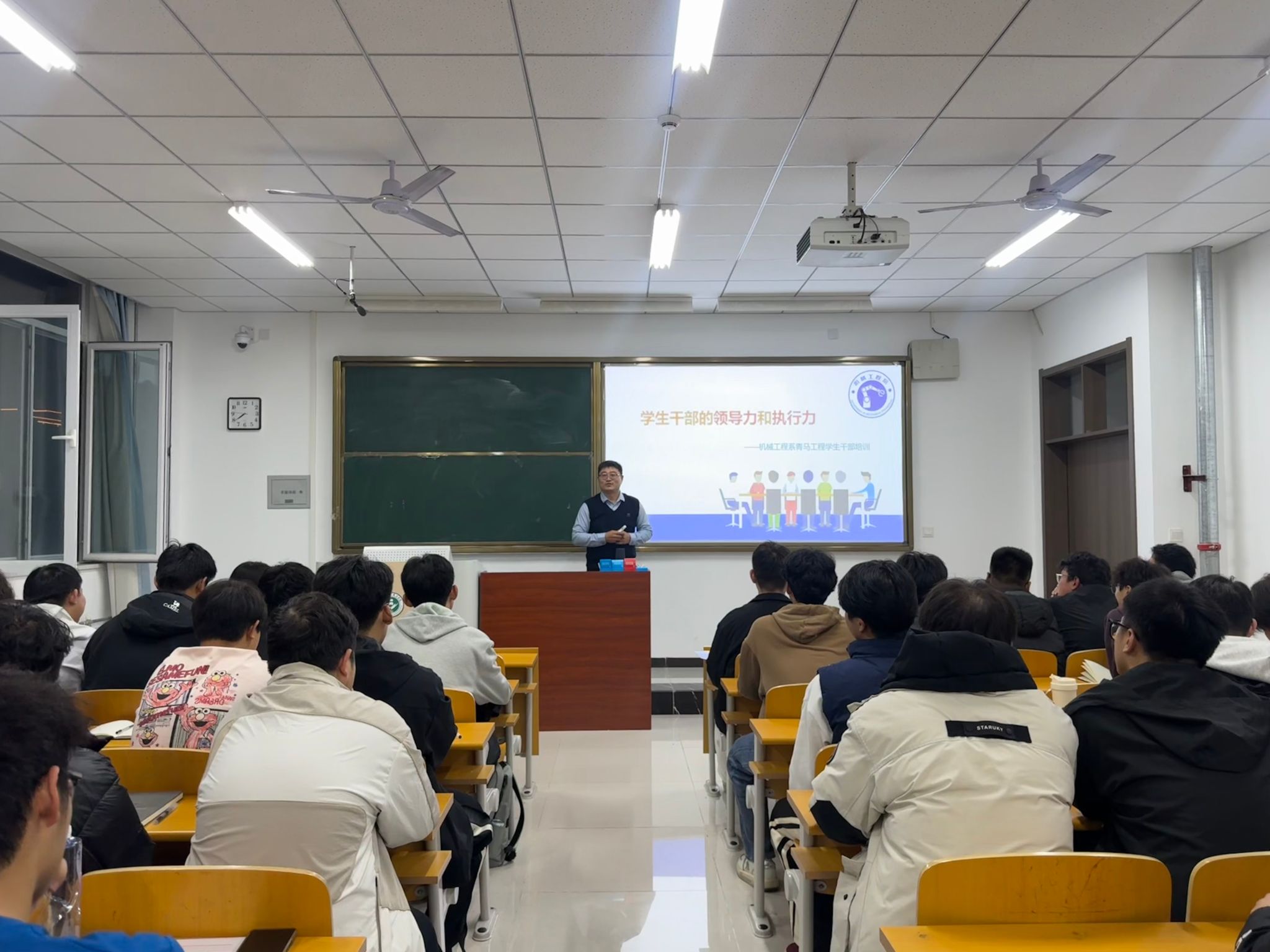 师者开讲,如松风解带。领,是率众以趋;导,是引路以明。张晓雨老师开篇即点题:学生干部,先领己,后领人。对己,当以“三问”自省——“我是谁?为了谁?成为谁?”;对下,当以“三度”服众——“温度”暖人心,“力度”立规矩,“厚度”积信任;对上,当以“三心”成事——“同心”聚合力,“虚心”纳谏言,“恒心”贯始终。寥寥数语,如晨钟暮鼓,振聋发聩。