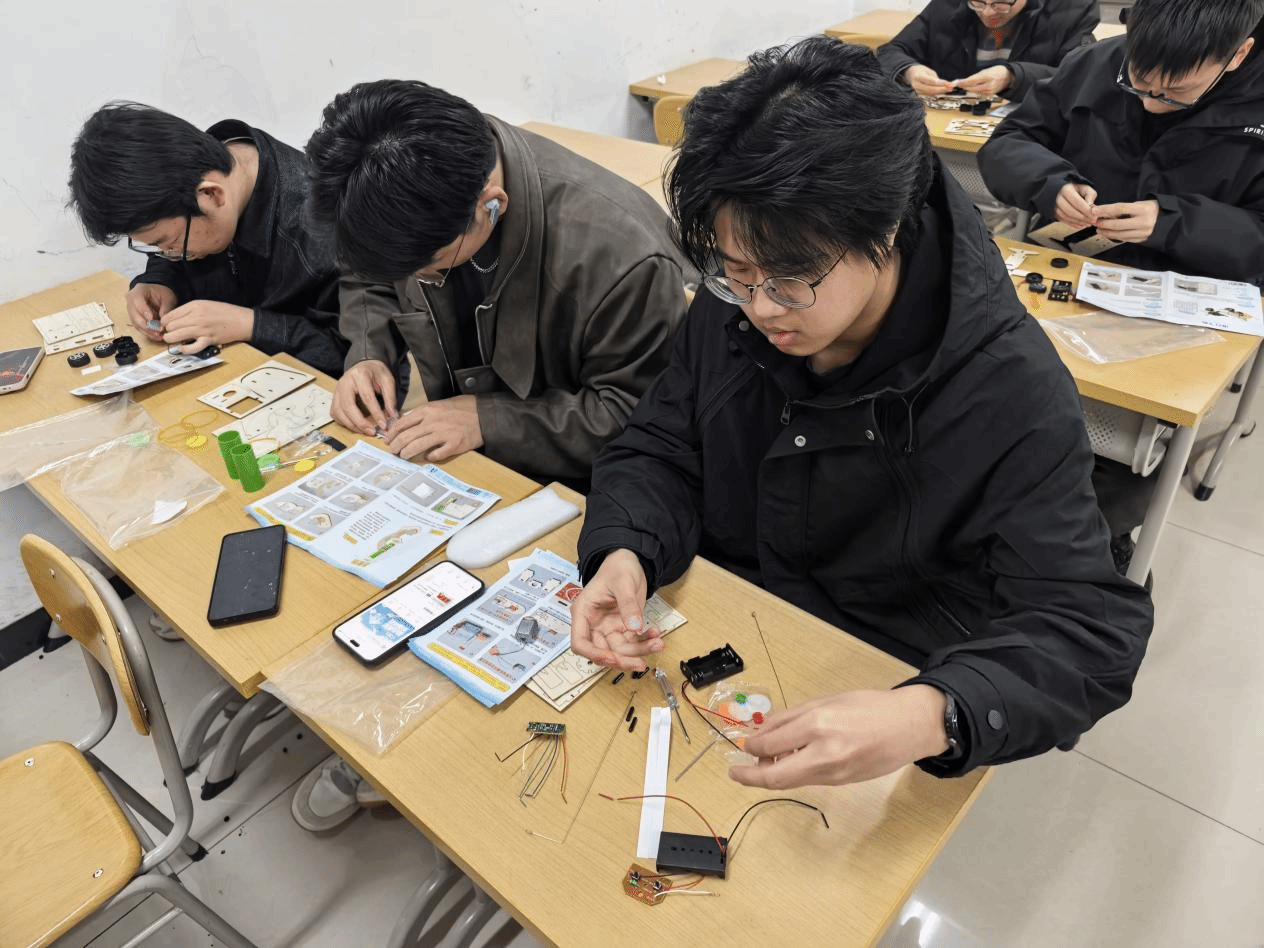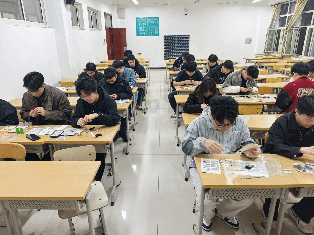 活动现场氛围热烈且秩序井然。同学们全神贯注投入到拼装任务中,有的独自钻研,细心比对每一个零件的规格、位置,耐心调试机械结构;有的三两成群,分工协作、默契配合,共同探讨拼装思路,交流机械结构原理。指尖翻飞间,零散的零件逐步组合成完整的机械模型,每一个步骤都凝聚着同学们的专注与巧思。遇到拼装难题时,大家积极交流探讨,场洋溢着勤学善思、勇于实践的浓厚氛围。