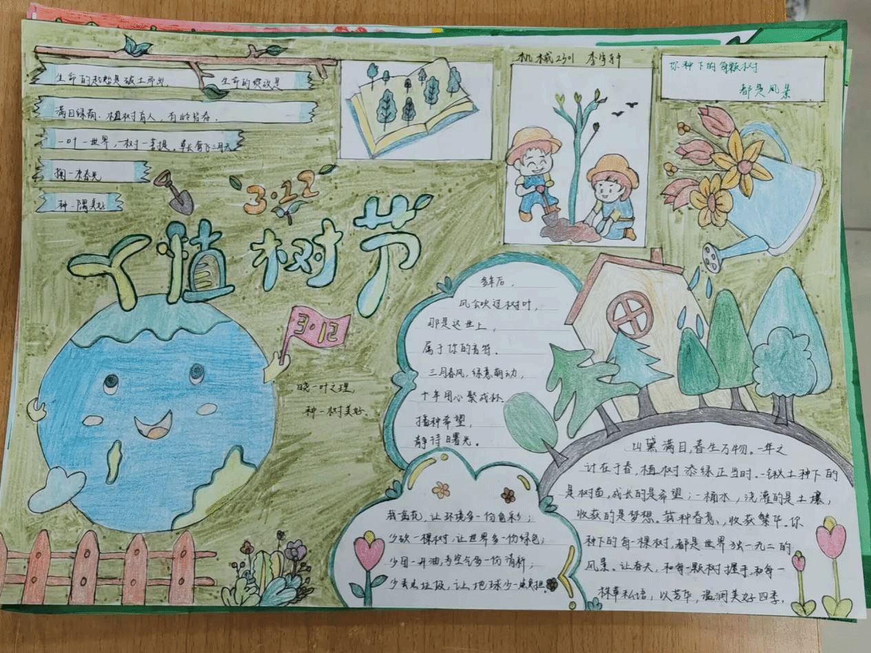 对植树节相关意义和文化的了解过后,机械系的同学们也对本次活动产生了浓厚的兴趣,下面让我们共同鉴赏本次活动收集的优秀手抄报。