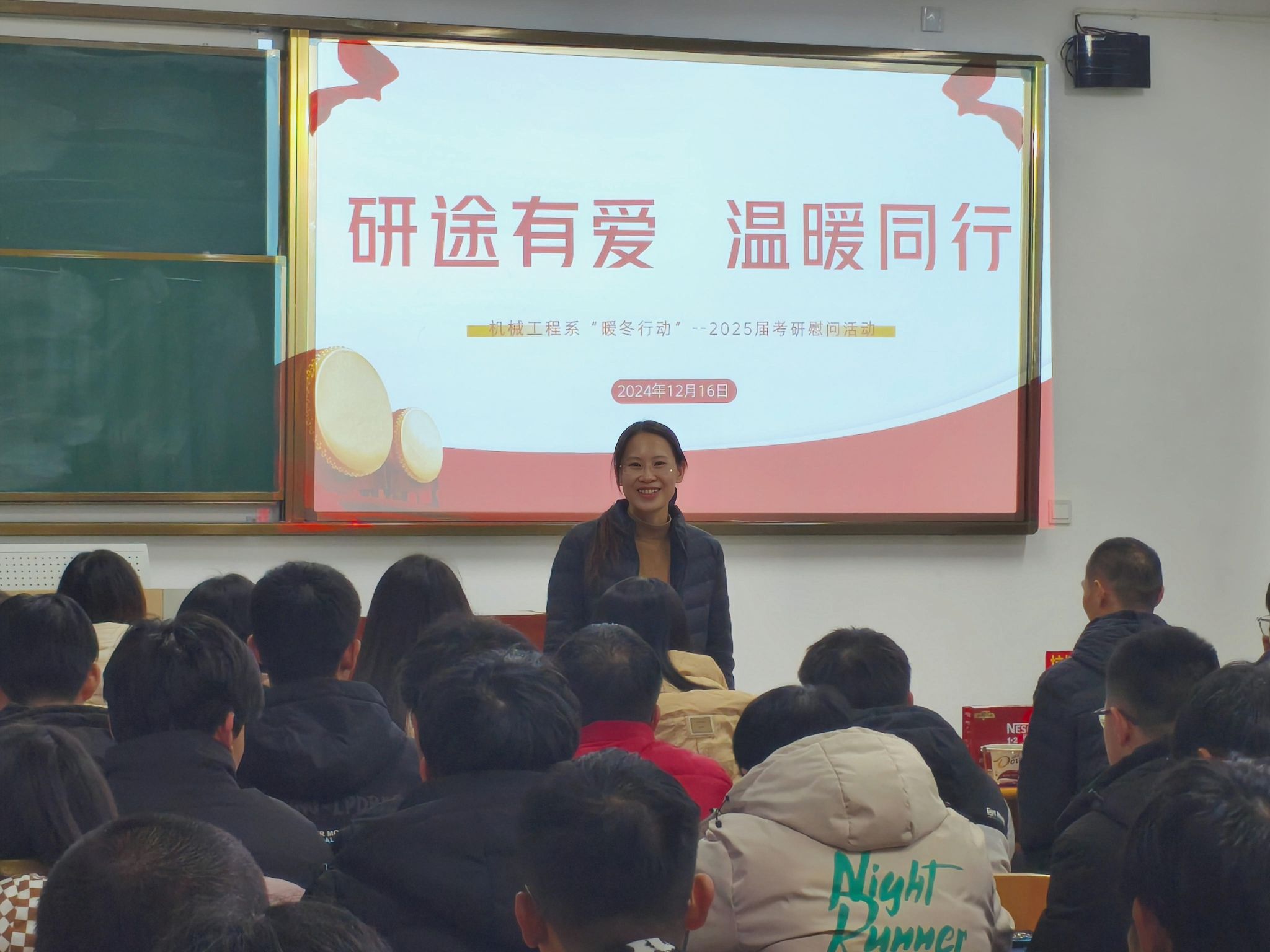 活动当天,英国365上市集团书记路维、系主任张铁壁、副书记杨学智、副主任石岩、团委书记贺欢呼以及毕业班辅导员等一行人为同学们送上精心准备的慰问礼包。礼包内不仅有考研文具,还有各类能量补充食品,如巧克力、士力架、咖啡等,寓意着为同学们的考研之路 “充电续航”;在现场还观看了来自上一届学长学姐送来的祝福视频,让他们在寒冷的冬日感受到来自系里的融融暖意。