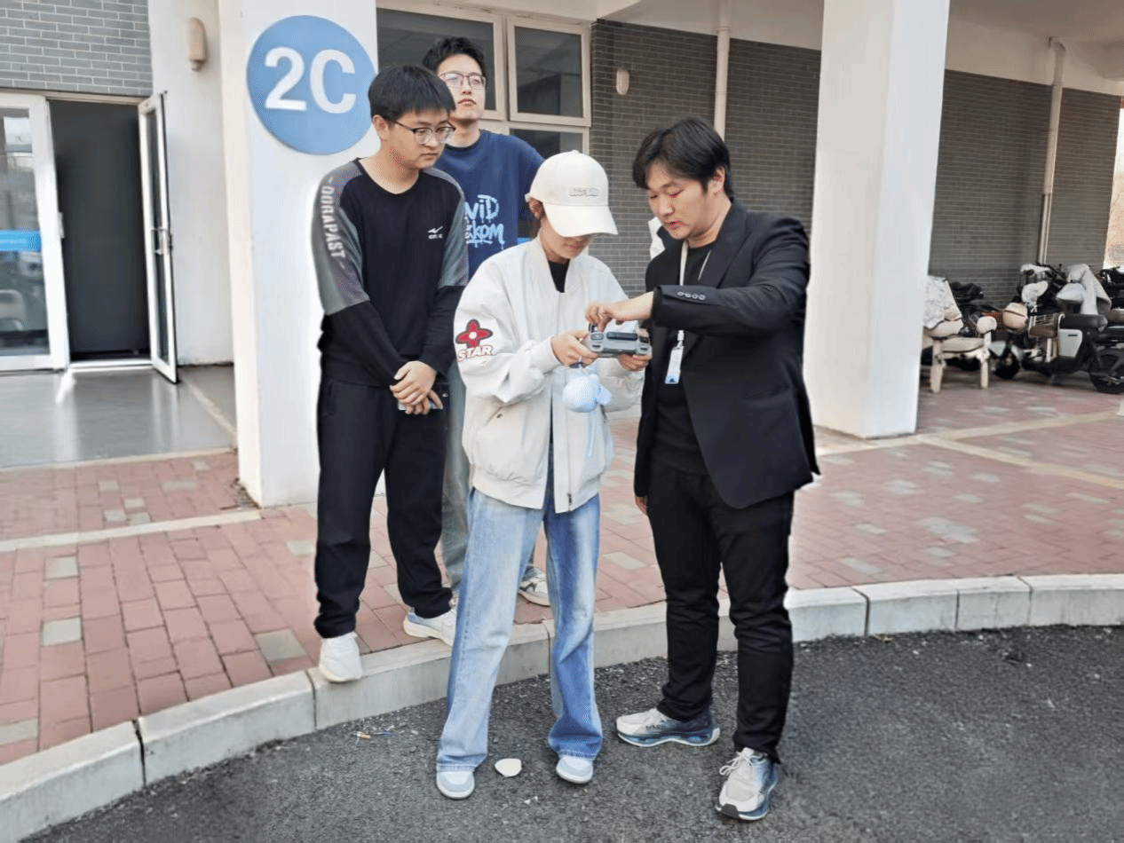在实操体验环节,同学们在讲师的一对一指导下,亲手完成无人机的遥控器操作校准,尝试操控无人机完成悬停、航线飞行、姿态调整等基础动作。指尖操控间,大家真切感受到无人机飞行控制的精度与技巧,脸上满是探索新知的兴奋与专注。通过亲手实践,同学们对无人机技术的认知从书本理论转化为直观体验,也进一步激发了投身无人机技术应用研究的热情。