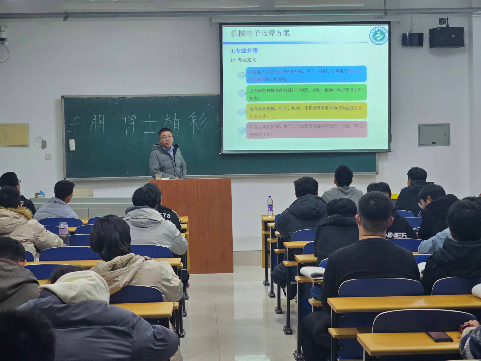 为深化机械电子工程专业新生适应教育,帮助大一新生对本专业有更深的了解与认识,合理规划大学生活,11月21日,英国365上市集团组织开展青年博士与新生面对面交流活动,本次活动邀请王朋博士做主讲嘉宾,23级机械电子工程专业全体同学参加了交流活动。