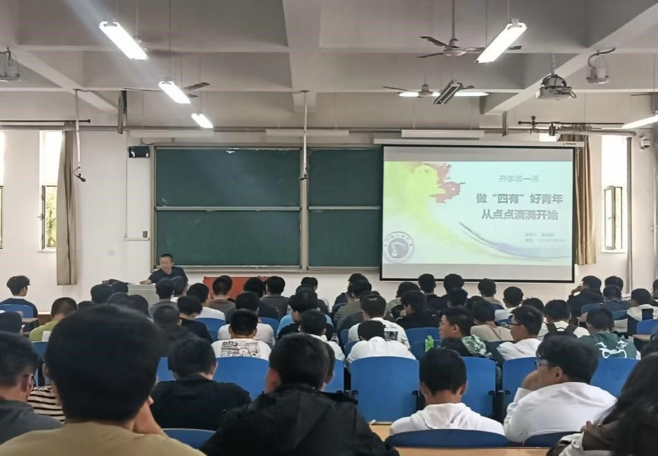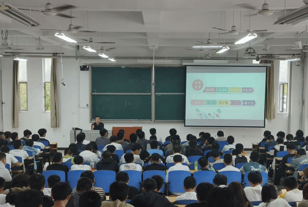 最后,张主任强调了成为“四有青年”的重要性。作为年轻人,应该秉持理想、道德、文化和纪律,这是成长的基石。其中有理想是前进的动力,有道德是行为的准则,有文化是修养的基础,有纪律是自律的表现。并要求大家:一要从实际出发,确立切合实际的目标,将目标分解到每月、每周、甚至每一天能够实现的计划,进而逐步实现各自的理想;二要做到踏实、诚信,通过大学四年注重个人素养的修养的积累,培养良好的道德情操;三是努力学习专业理论知识与实践技能,积极参加各级各类学科竞赛,不断丰富自己的专业知识,真正做到有文化;四要遵守学校的规章制度,严守纪律,自律自省,养成良好的学习和生活习惯。