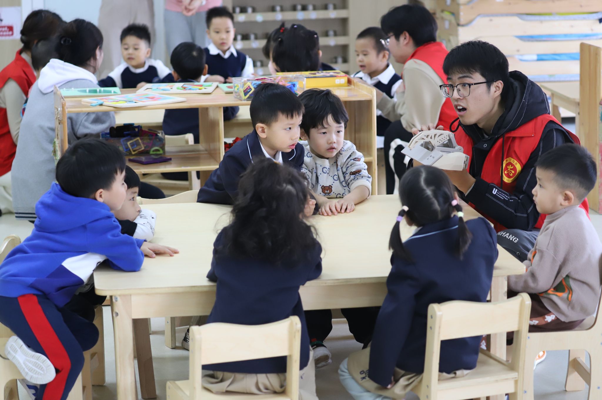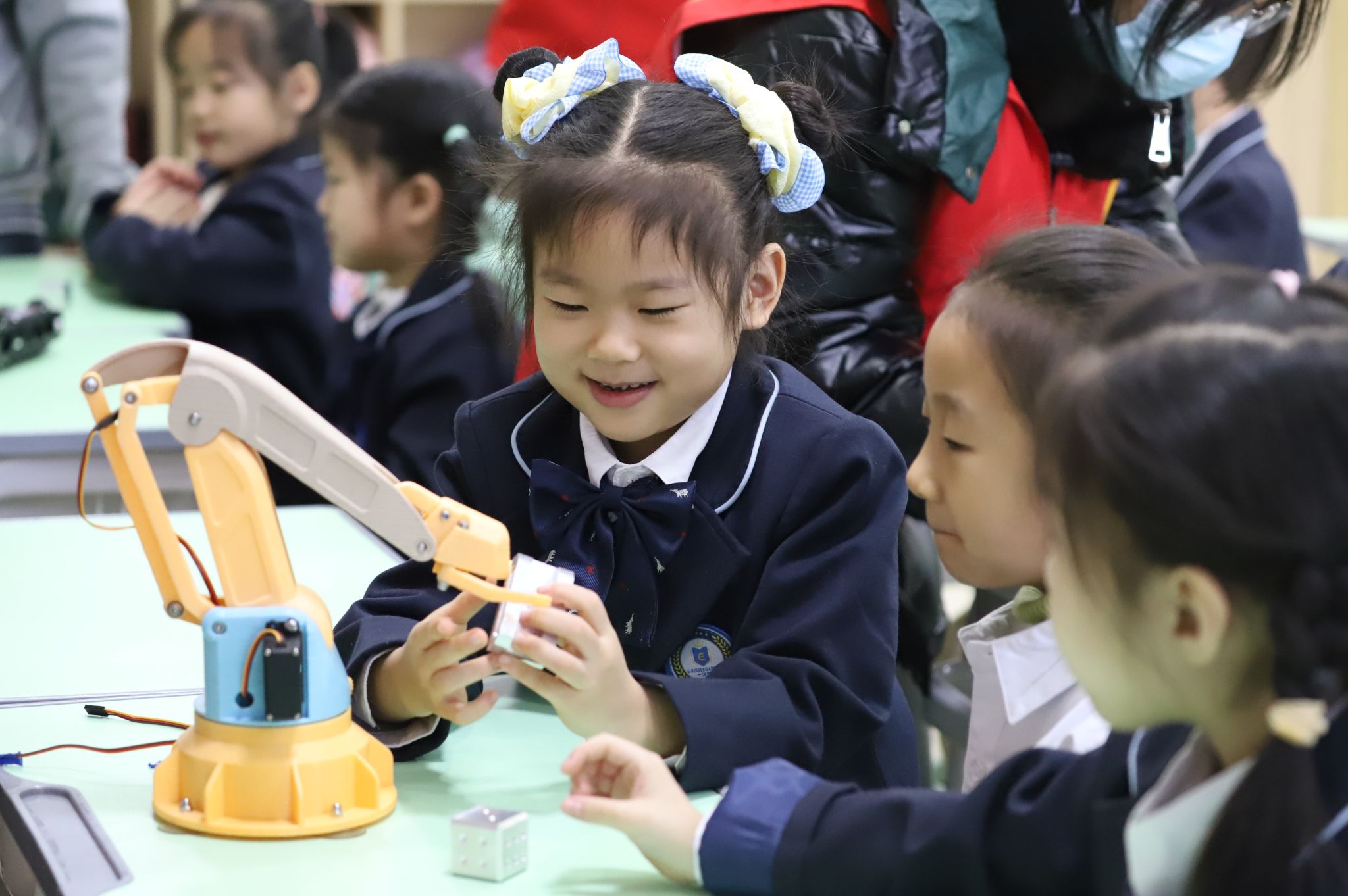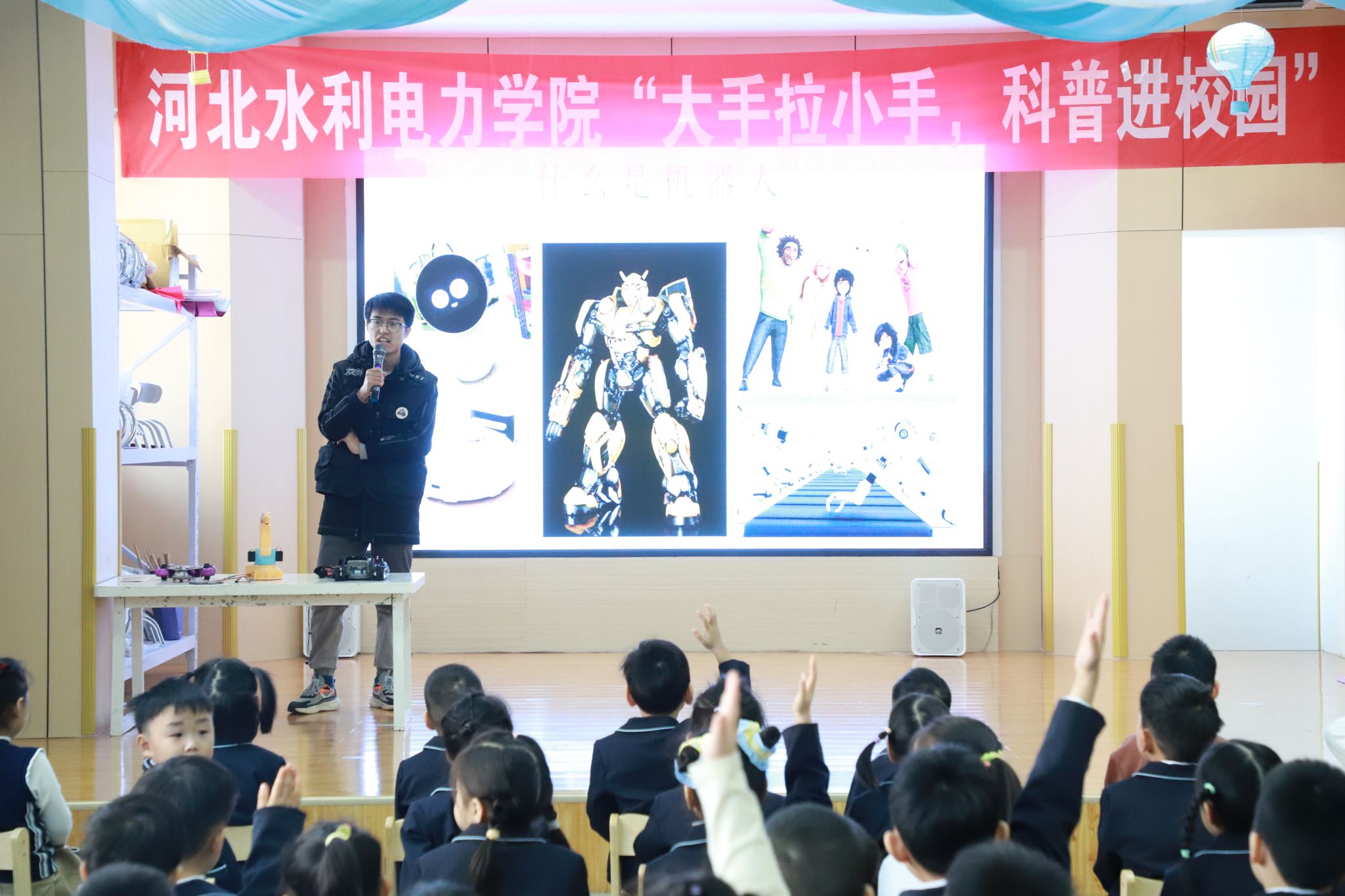 为激发小朋友们对科技的兴趣,进一步培养他们的创新思维和实践能力,使其在快乐的氛围中探索科技的奥秘,1月4日上午,机系工程系“竞创”机甲格斗社社团到运河区一沐塬幼儿园开展了“大手拉小手 科普进校园”活动,为小朋友们带来了一场充满科技与激情的视觉盛宴。