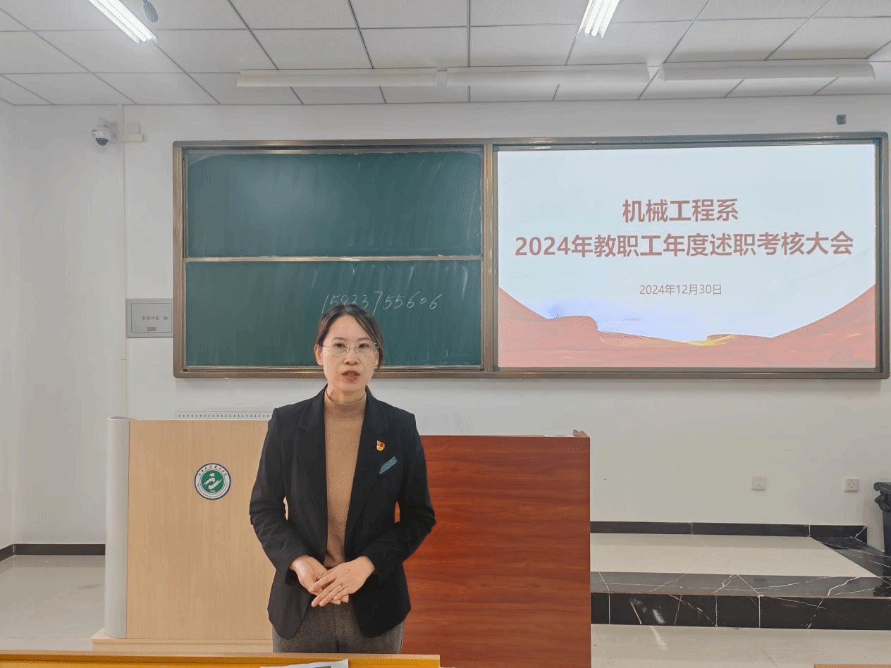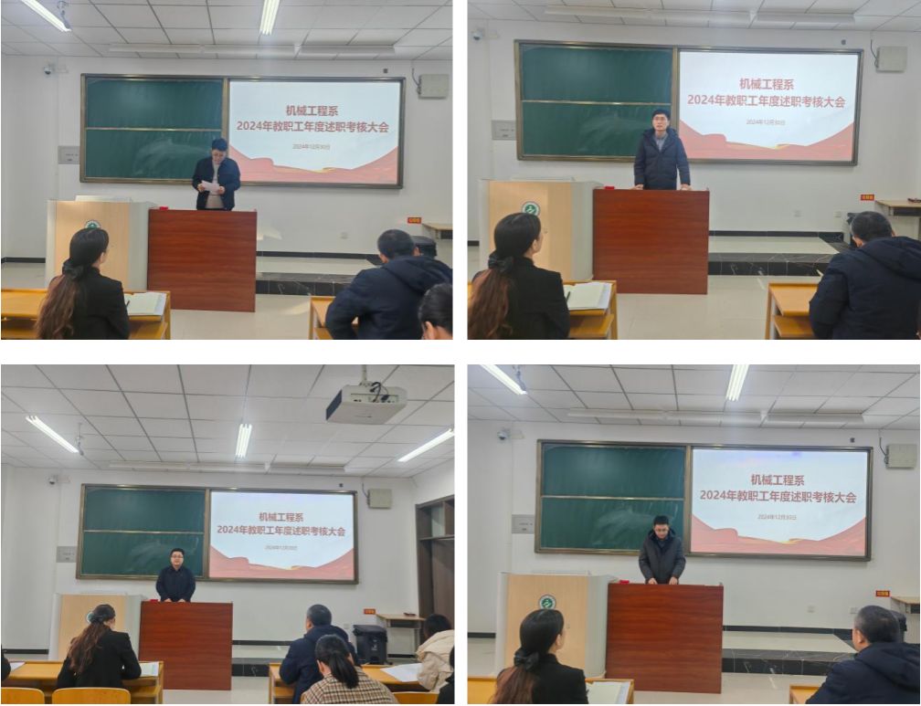 会上,由各教研室、学工办等部门推荐的11名教师依次进行了现场述职。各位教师分别围绕德、能、勤、绩、廉五个方面,从年度政治理论学习、教育教学、学生管理、科研竞赛等方面,谈成绩、讲方法,全面、细致、深入地汇报了一年的工作情况。通过此次述职,不仅展示了大家的工作成果,增进了彼此间的了解和交流,还为下一步工作指明了方向、厘清了思路。