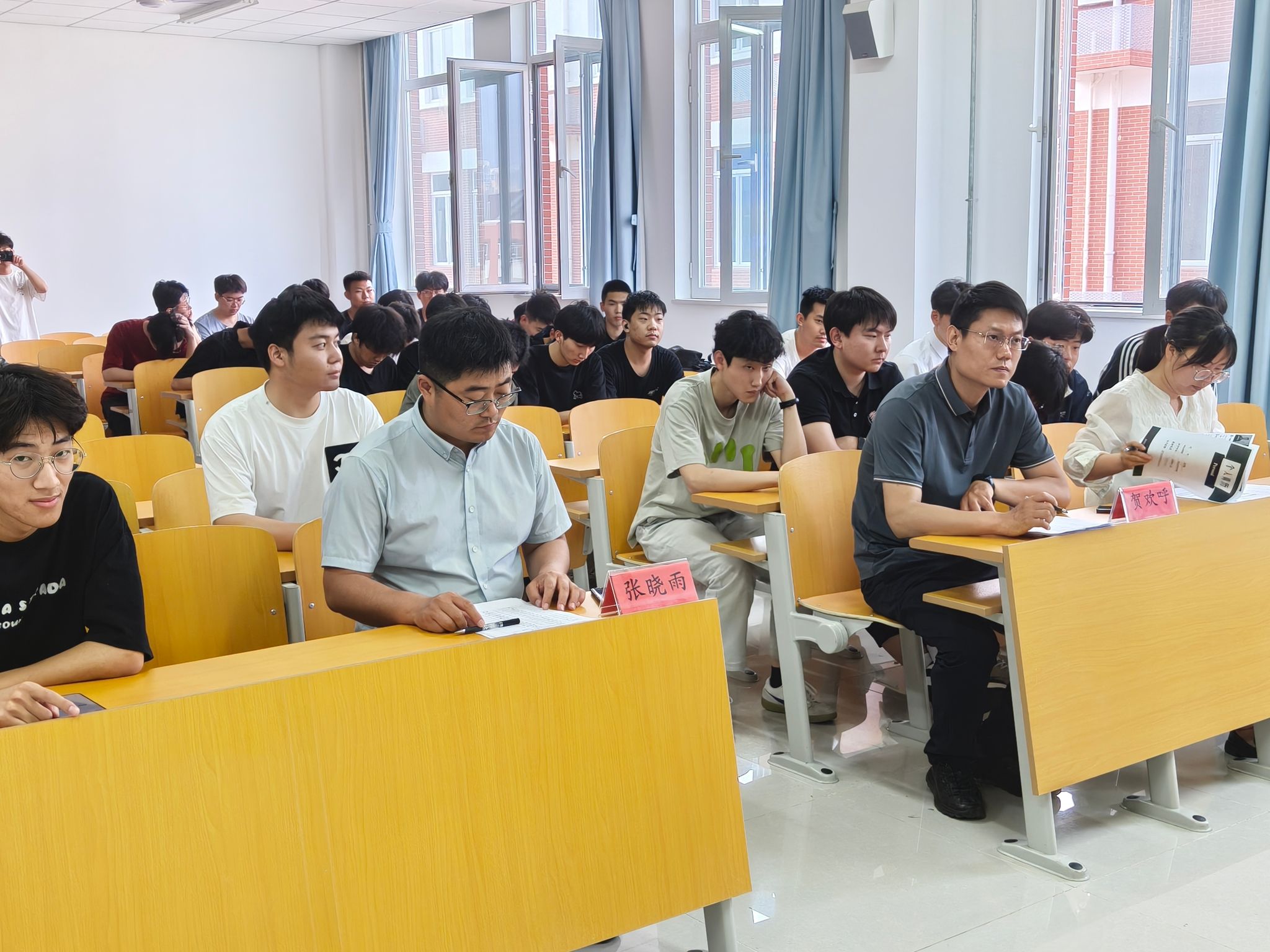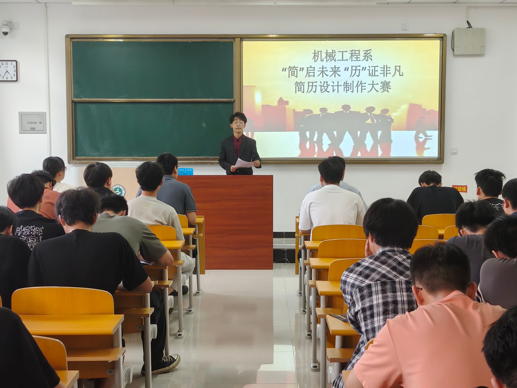2025年5月16日2C404教室座无虚席,一场别开生面的简历设计制作大赛在此火热展开。这场以提升学生就业竞争力为核心的赛事,吸引了全系师生的关注。系团委书记贺欢呼老师、就业负责人张晓雨老师、毕业班辅导员安丽媛老师组成评委团,与14名从班级初赛脱颖而出的选手共同开启了一场关于职业竞争力的探索之旅。