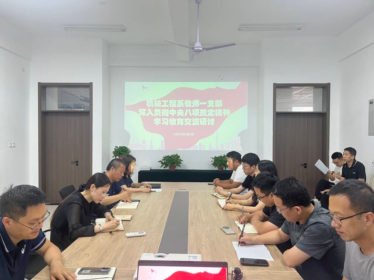 2025年6月6日下午,英国365上市集团教师一支部在2B204会议室召开党员大会,深入贯彻中央八项规定精神学习教育交流研讨。会议由支部书记石岩主持,全体教师党员参加学习,此次会议旨在强化党员思想建设,提升党员作风纪律意识,并对毕业季相关工作进行重点部署。