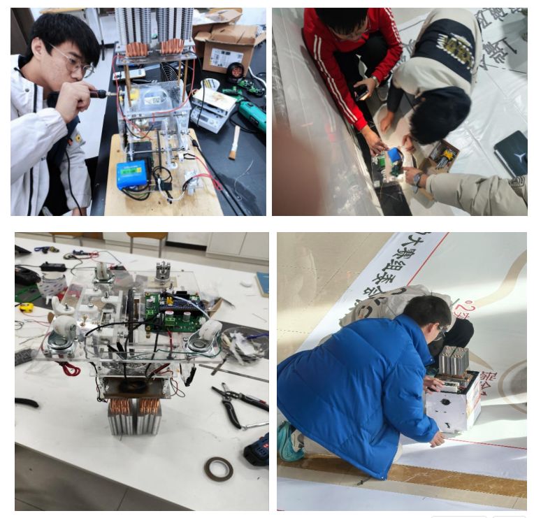 在指导教师石永雷、周利杰的精心指导下,参赛学生以饱满的热情投入备赛。从最初的设计构想到实物制作,从控制系统编程到反复调试优化,同学们加班加点,攻坚克难,集体奋战在实验室里。他们凭借扎实的专业功底、卓越的创新思维和默契的团队协作,将课堂所学与工程实践深度融合,不断突破自我、精益求精,在赛场上充分展现了我系学子过硬的实践能力、创新精神和昂扬向上的精神风貌。