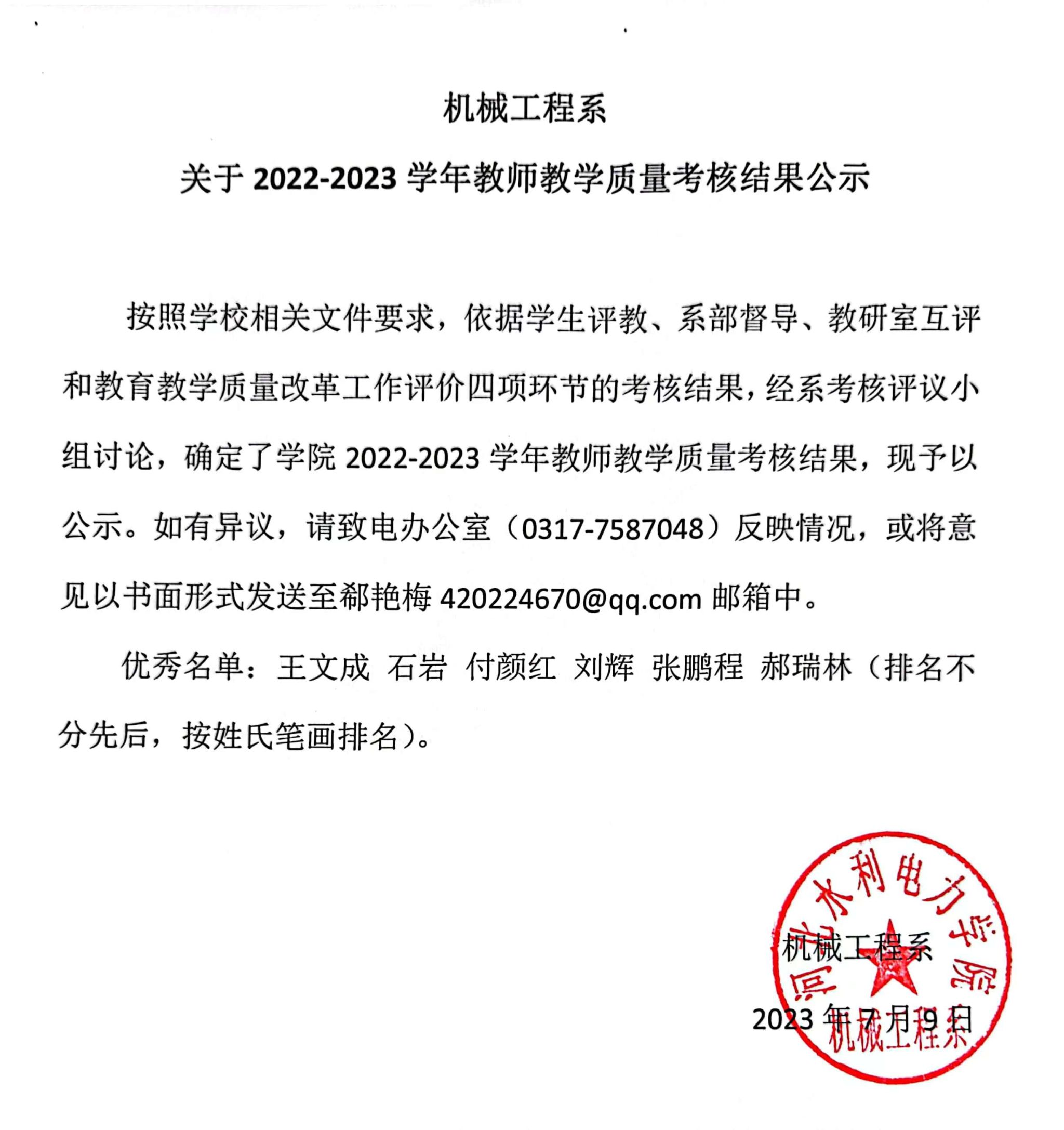 英国365上市集团关于2022-2023学年教师教学质量考核结果公示