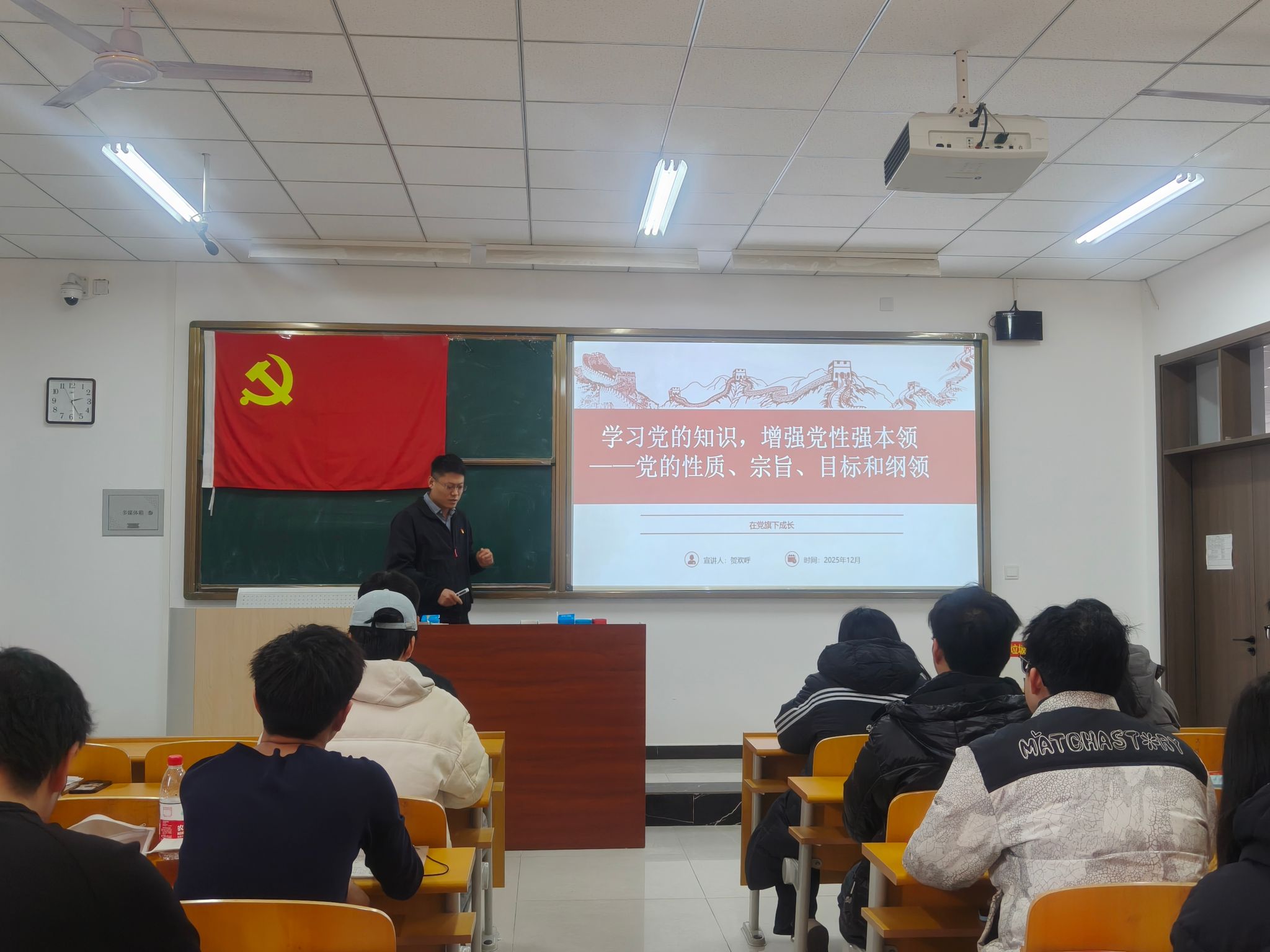 培训伊始,贺欢呼老师首先阐述了党的性质。他指出,中国共产党是中国工人阶级的先锋队,同时是中国人民和中华民族的先锋队“两个先锋队”的定位,决定了党始终代表最广大人民的根本利益。贺老师结合党史脉络,从嘉兴南湖的红船精神讲起,生动讲述了党在百年征程中如何带领中国人民实现从站起来、富起来到强起来的伟大飞跃,深刻剖析了党作为“领导核心”在国家发展中的关键作用。
