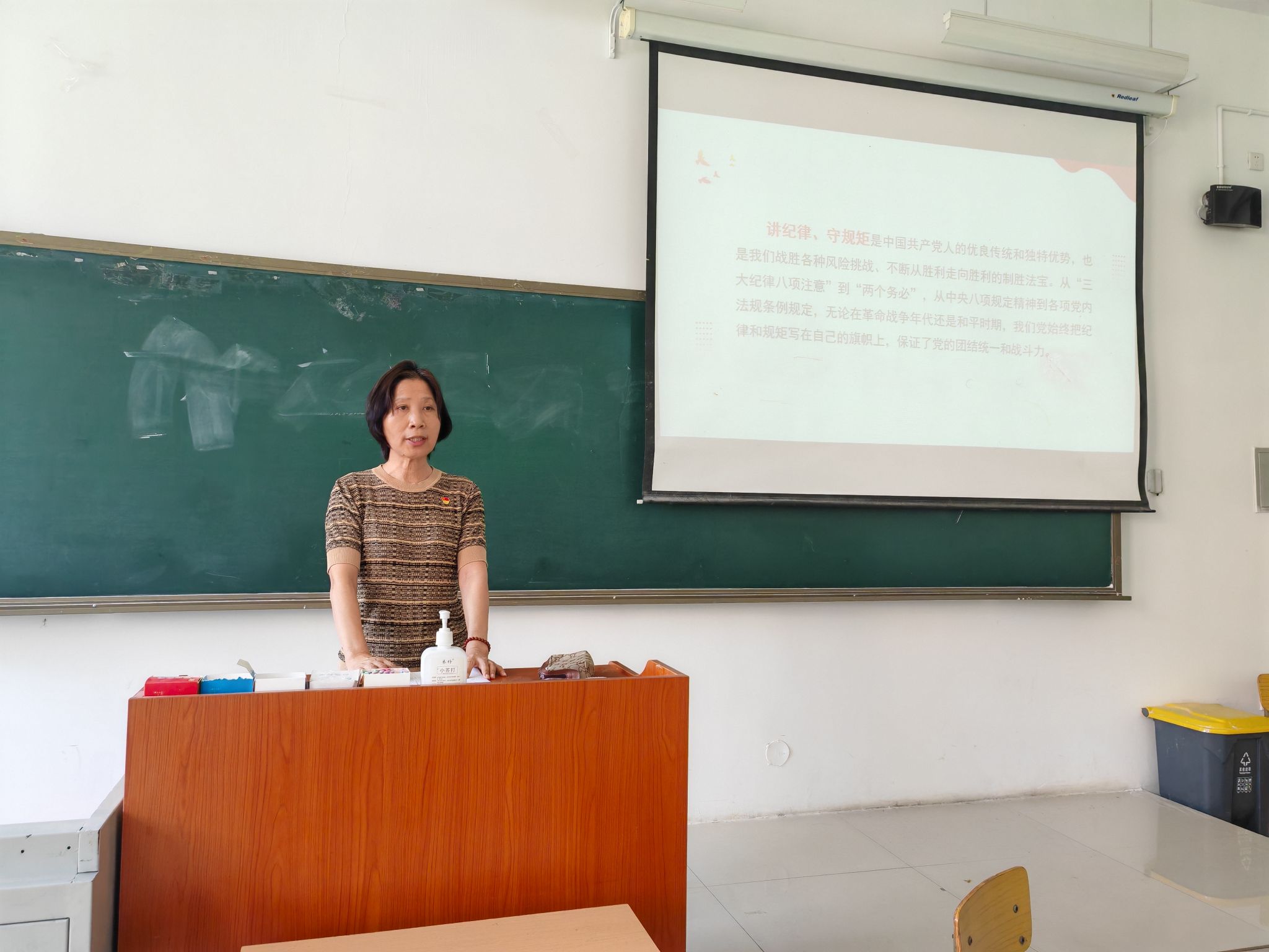 荆秀萍表示,纪律是管党治党的“戒尺”。全体党员要学纪筑基,进一步增强学习《条例》的自觉性和主动性,准确把握“六大纪律”的主旨要义和规定要求,把学习融入日常,抓在经常,在学深悟透中进一步筑牢政治忠诚。要知纪立行,时常对照党章党规党纪检视自己的理想信念和思想言行,不断掸去思想上的灰尘,始终做到忠诚干净担当。要明纪促干,履职担当,将《条例》学习成果转化为干事创业的实践动力,为推动我系高质量发展提供坚强保障。要守纪立身,常敲思想警钟、常紧纪律之弦、常存敬畏之心,严守公与私的“警戒线”、是与非的“高压线”、情与纪的“分界线”,做自我革命的表率、遵规守纪的标杆。
