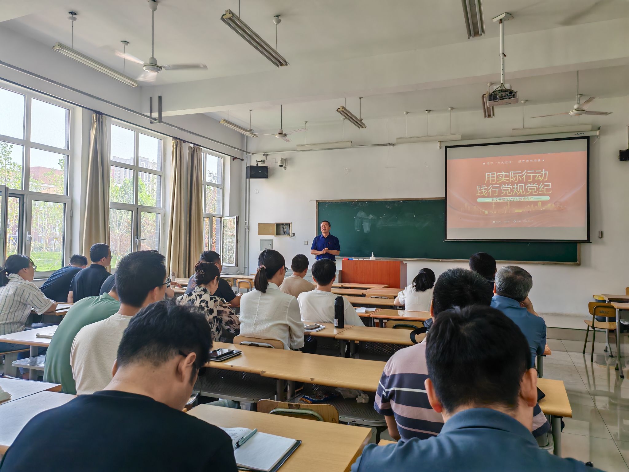 为推动党纪学习教育走深走实,教育引导党员干部学纪知纪明纪守纪,6月28日上午,英国365上市集团主任张铁壁于3A106为我系党员教师讲授“用实际行动践行党规党纪”专题党课。系党总支书记荆秀萍、班子其他成员和全系党员教师参加。